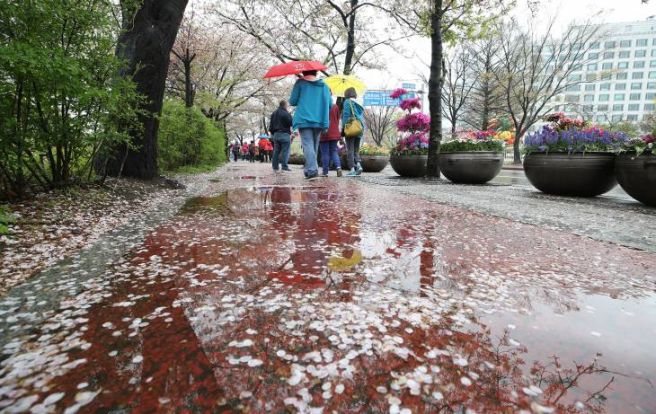 우수수 떨어진 꽃비로 집콕입니다 코 훌쩍이면서.. -