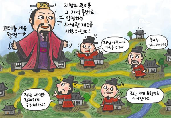유향소는 고려시대 초기 태조 왕건이 만든 사심관 제도를 본뜬 것이었어요.