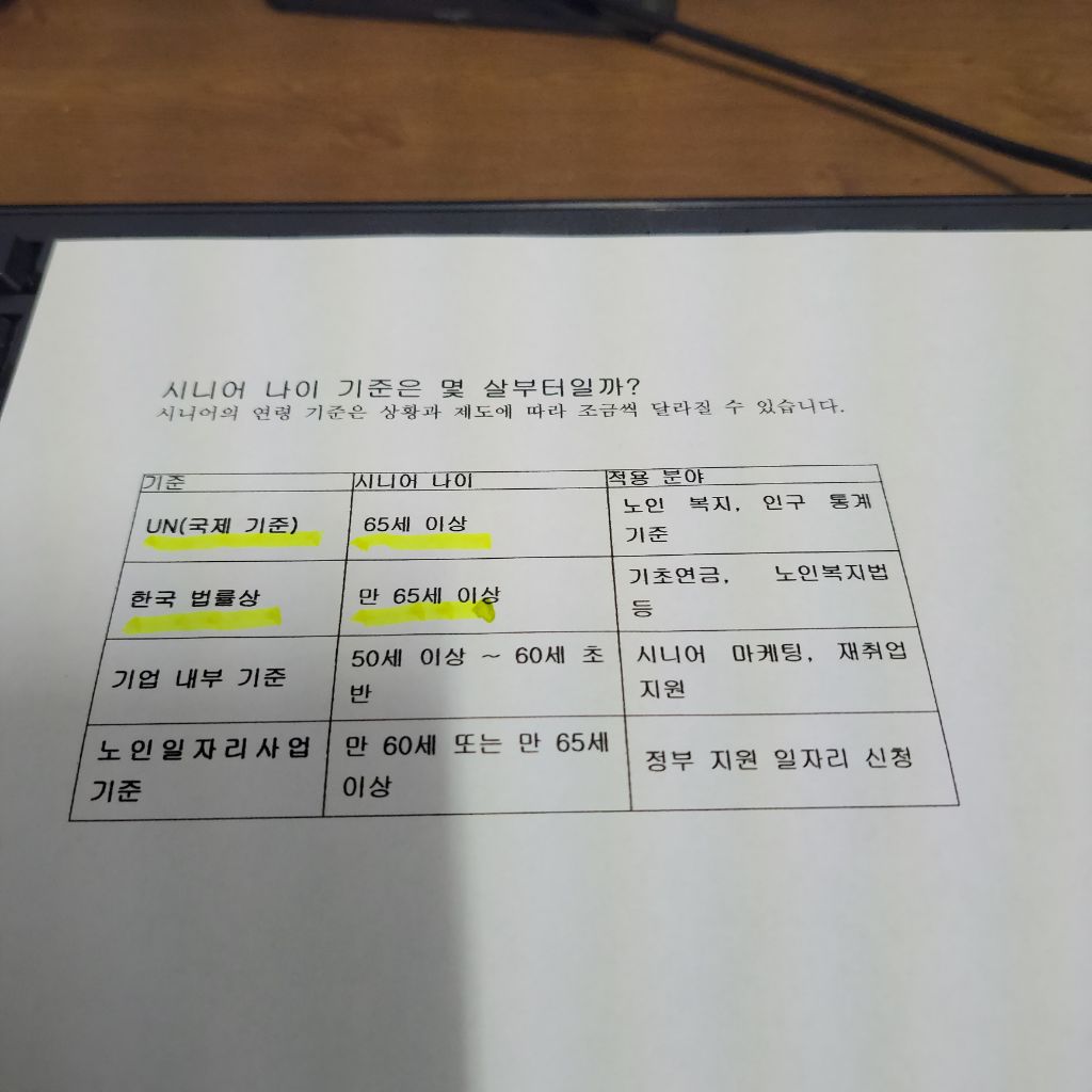 시니어를 나이로 구분하는 학문적 용어는
