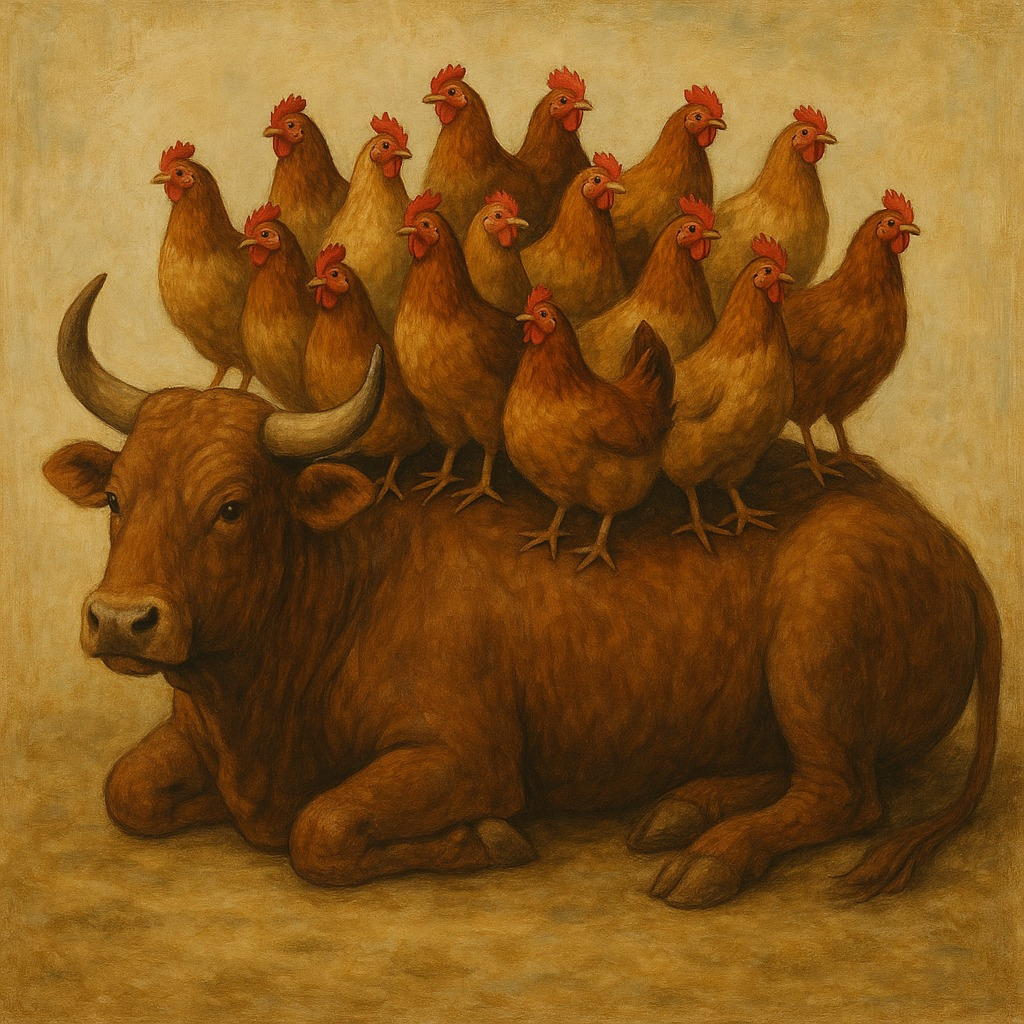 소는 묵묵한 인내와 노동의 상징으로, 땅의 힘을 품고 있다.