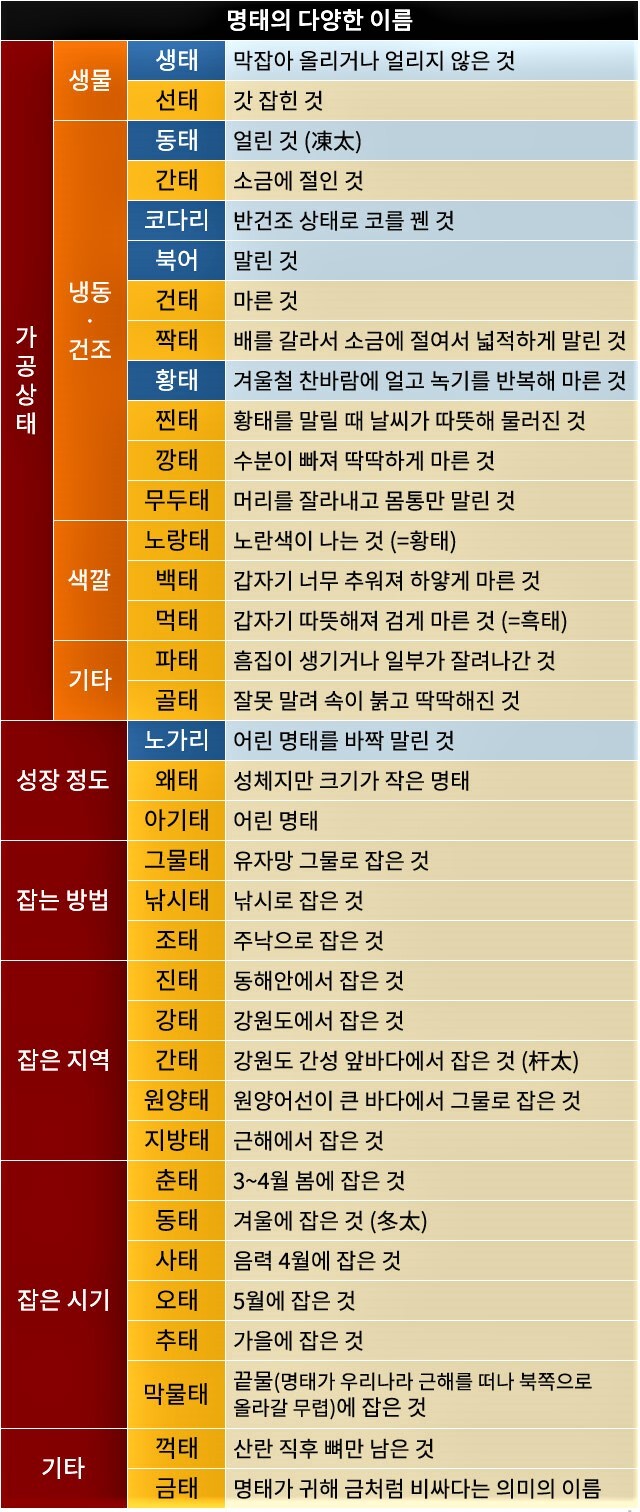 이처럼 명태는 시대에 따라 명칭이 새롭게 생성돼왔다.
