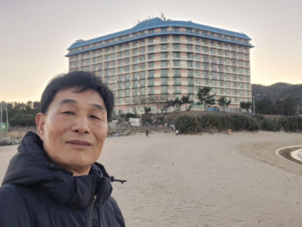 금강산 콘도 바닷가 백사장바라본 금강산 콘도~