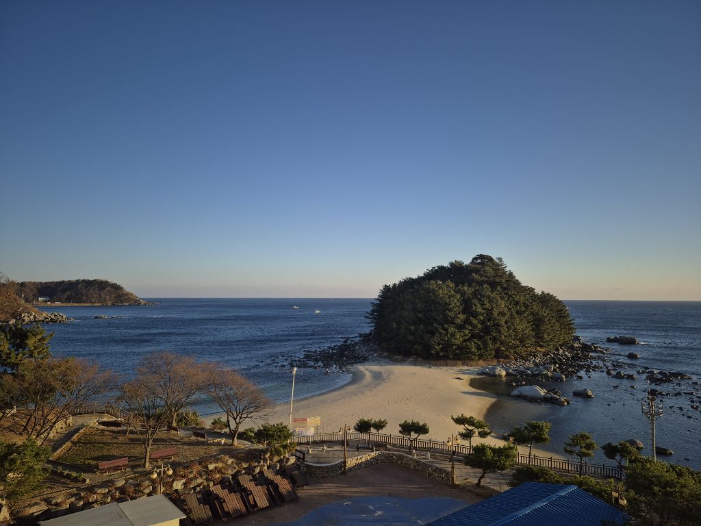 금강산 콘도에서 가라본 바닷가
