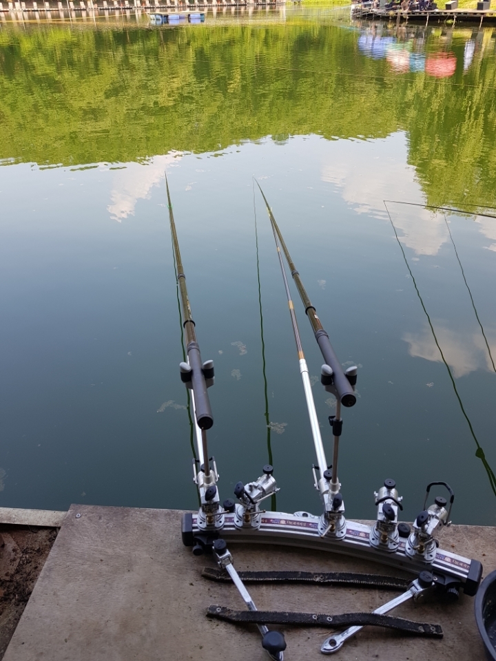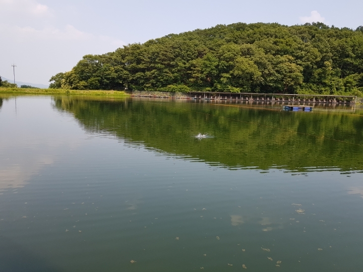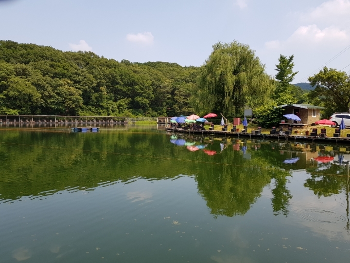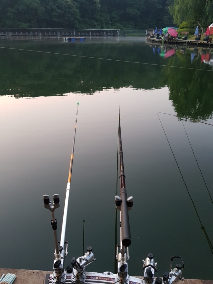 힘 좋은 향어가 자주 나오니 줄 엉킴이 심해 죄측 낚싯대는 빼 버렸슴.