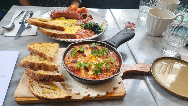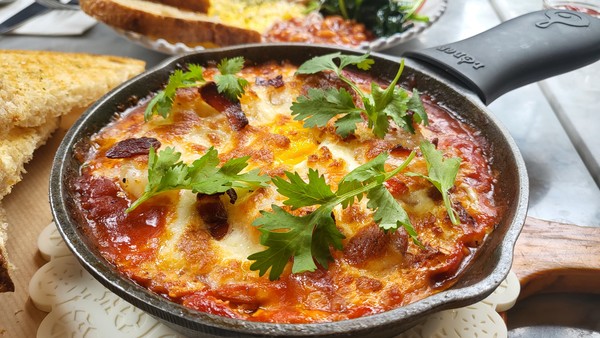 작은 후라이팬으로 요리하여 그대로 내어 먹는 샥슈카의 화룡정점이라 할 수 있는 것은 바로 음식의 가운데 부분을 파 날달걀을 깨트려 넣어주는 것입니다. 뜨거운 샥슈카 사이에서 익어가는 달걀을 잘 섞어주면, 달걀이 위가 아플 정도의 매운 맛은 희석해주는 역할을 해준답니다.