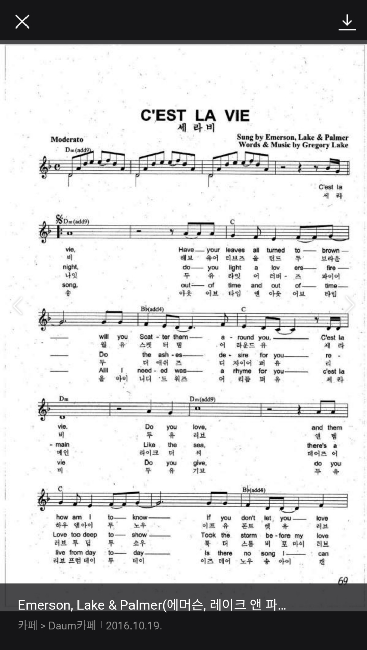 영국 프로그레시브 락 밴드 Emerson, Lake & Palmer가 1977년에 내놓은 C'est La Vie가 귀에 익은 분도 많으실텐데요. 여기서는 대만 가수 치유(Chyi Yu)의 노래로도 들어봅니다.