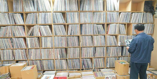 한 LP 마니아가 27일 회현동 중고음반매장의 때묻은 음반 속에서 희귀음반을 찾고 있다.