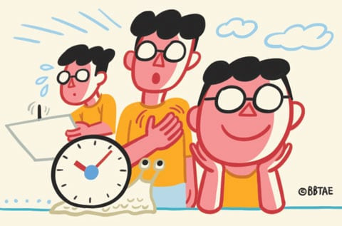 시간에 대한 인식·지각(time perception)은 상대적이다(be relative). 나이가 들수록(get older) 빨라지는 것처럼 보인다(seem to accelerate). 일곱 살 아이와 70세 노인에게 365일 기준 3153만6000초, 52만5600분, 8760시간, 1년 길이는 똑같아도 속도는 다르게 느껴진다. 즐겁고 재미있을(have fun) 때 시간은 금방 지나가지만, 힘들고 단조로운 일(drudgery work)을 할 때는 질질 늘어진다(drag on). 너무나 힘겨운 순간엔 마치 정지해 있는(stand still) 듯하다.