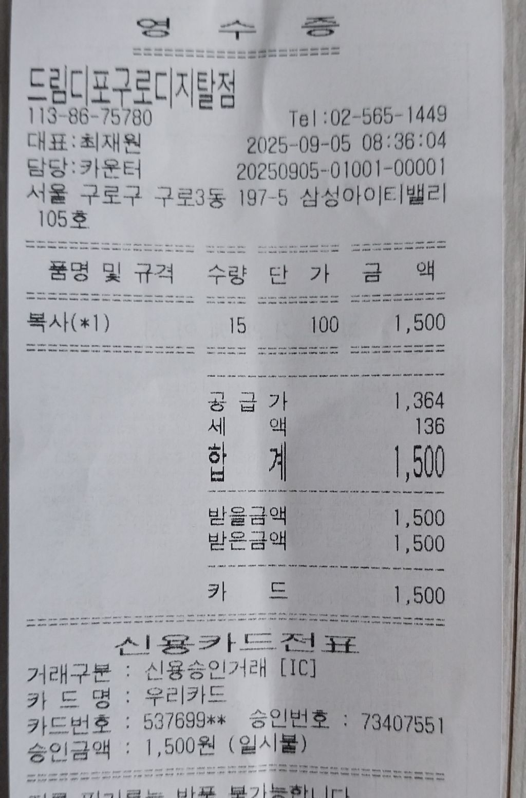 | 9/6 | 1,500 | 선곡표 15매 복사 | ||