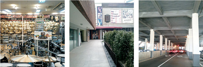 길 양쪽에 늘어선 박스형 상점들의 악기들은 유리 속에서 보석처럼 반짝였고, 가운데 아일랜드형 상점들의 악기들은 아름다운 몸매를 그대로 드러냈다. 삼거리도 있고, 골목길도 있는 작은 마을이었다. 밴드음악이 전성기이던 1980년대에는 2층 상가 삼거리에 즉석 밴드 인력시장이 서기도 했다고 한다. 때로는 넘어갈 수 없는 거대한 기억의 장벽으로, 때로는 내부 공간이 없는 영화 간판으로만 인지되던 낙원상가가 골목길로서 내 삶에 다시 들어온 것이다.