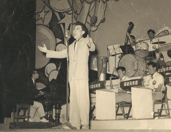 사교춤이 한창 유행하던 무렵 이 곳은 풀 멤버 밴드가 있던 일류 카바레로 명성만큼이나 무대 또한 근사했다. 물론 그가 이전에 섰던 야전무대와는 비교조차 되지 않았다. 이 때 돌발 상황이 발생했다. 친구들이 그를 무대로 끌고 올라간 것이다.