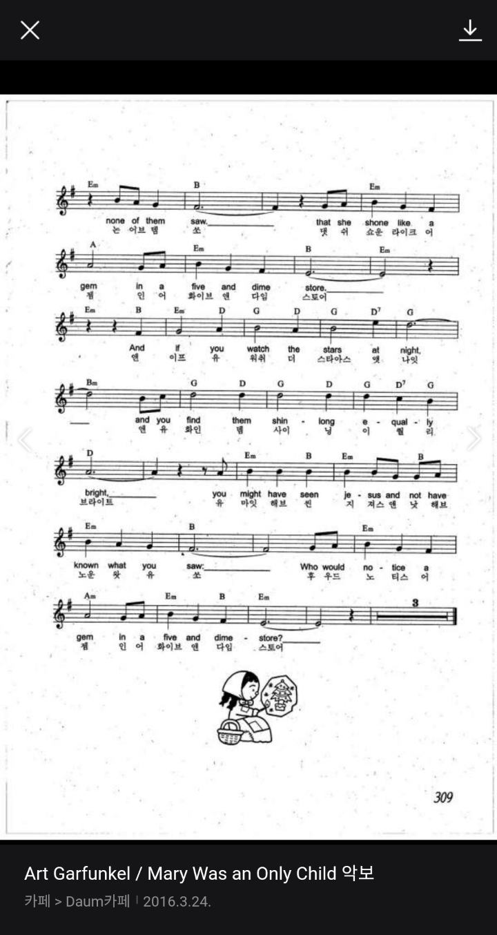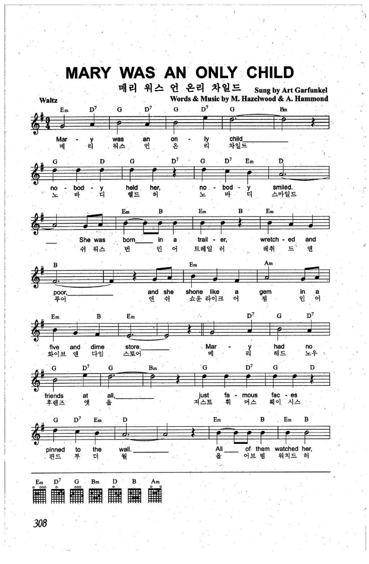 Mary Was An Only Child는 Simon & Garfunkel 출신의 뮤지션 Art Garfunkel 이 1973년 발표한 솔로 데뷔 앨범 <Angel Clare>에 수록한 곡으로 국내에서 아주 큰 사랑을 받았다. 싱글 All I Know의 B면 곡으로 사용되었다.