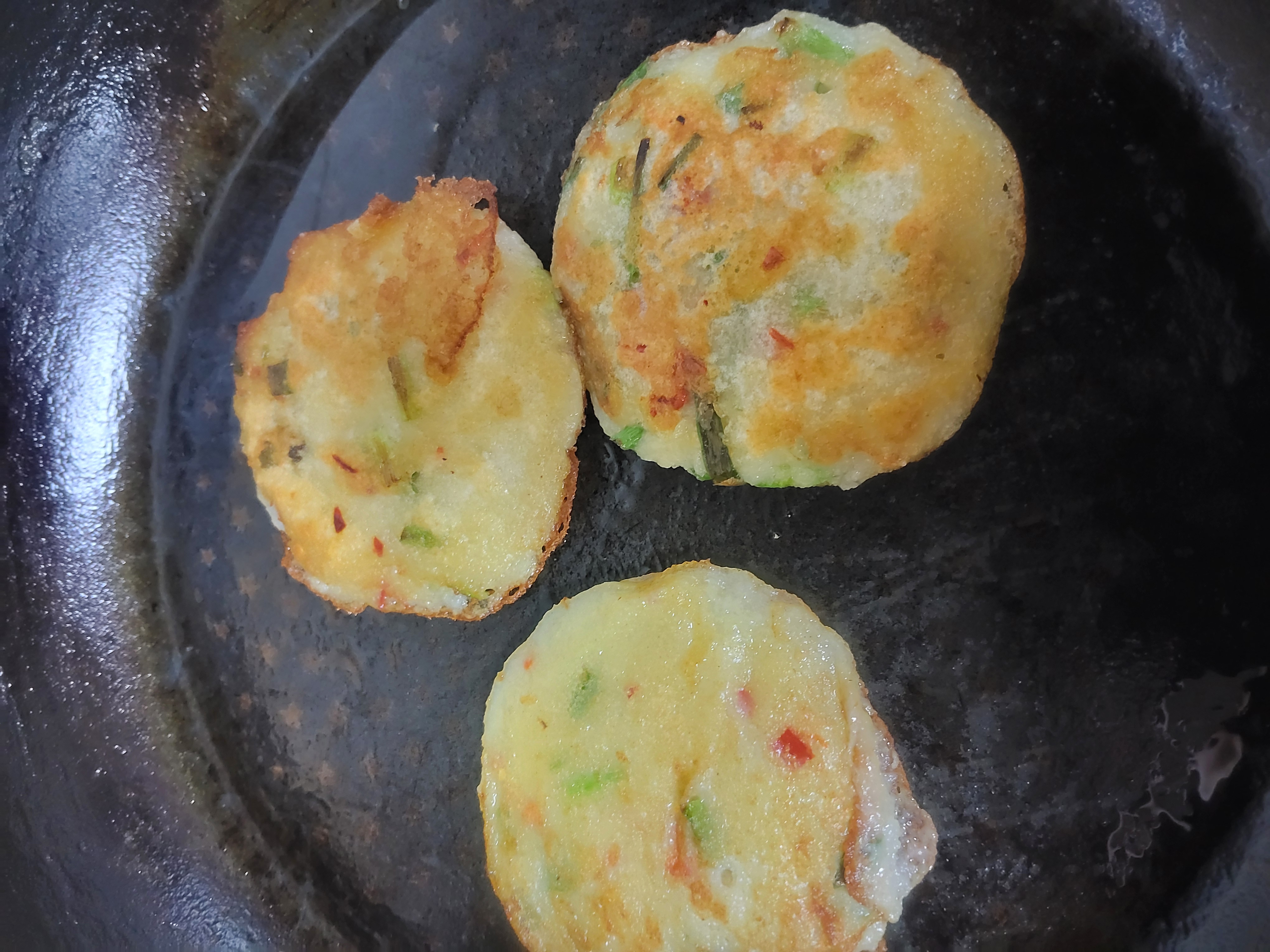 방송을 보니 감자 전을 맛있게 부쳐 먹는것을 보니 저녁 시간도 지나고 배도 고프기에 감자 몇개 있는것 갈아서 급히 부쳐 먹었네요