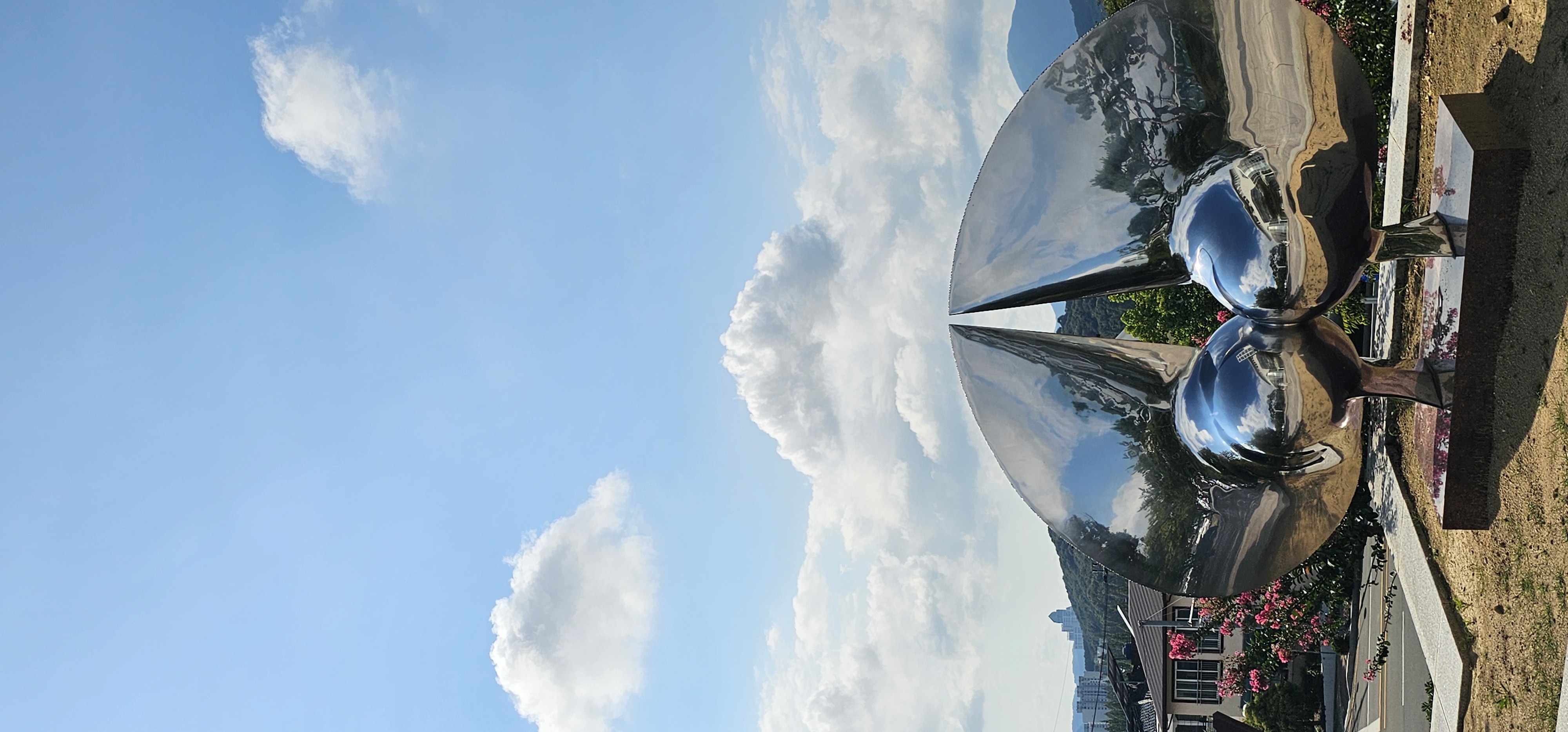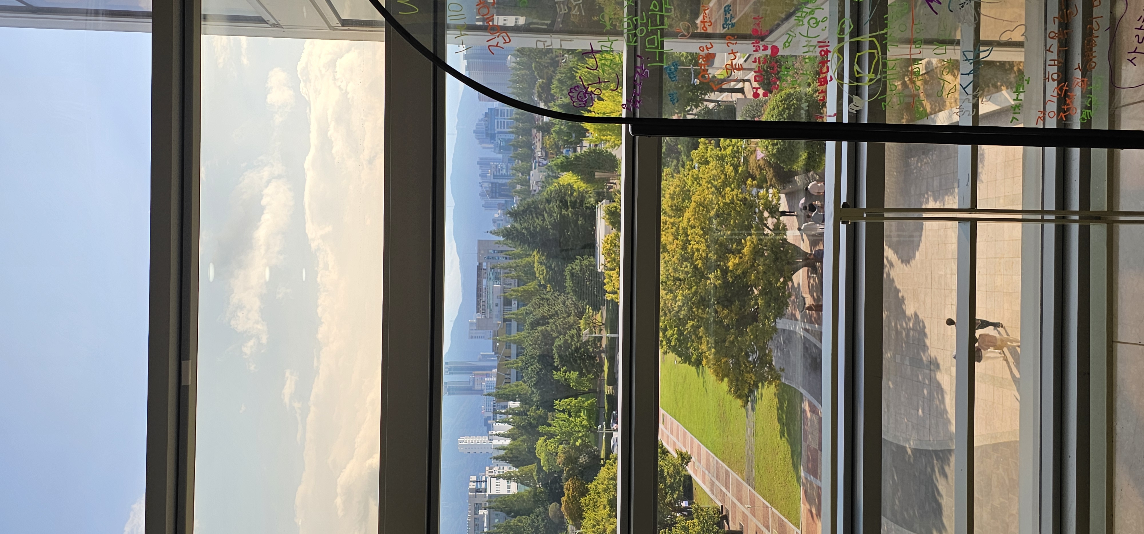 실버카페에 앉았는데 밖에서 이 아름다운 젊은처자들은 안이 안보이는 거울이니까 셀카를 찍더라