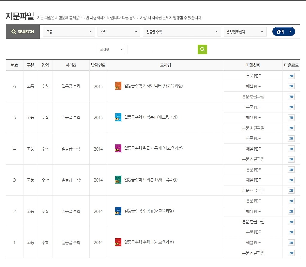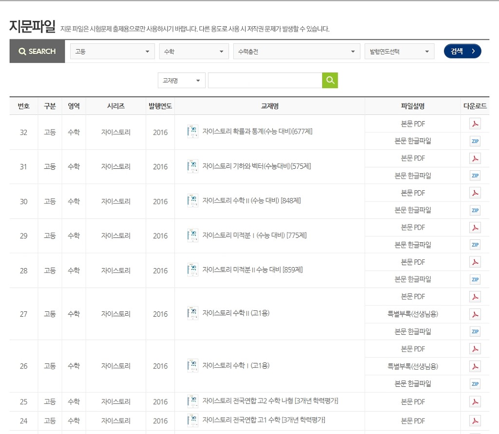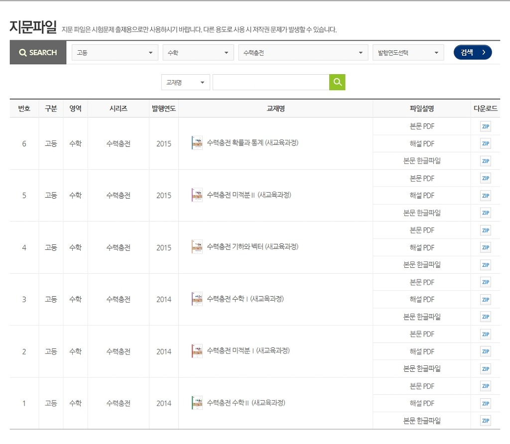 수I 수II 기벡 확통 미적I 미적II 까지 다 있으니 필요하신분 선생님회원으로 가입하시고 다운받으시면 됩니다. (GPKI 인증 X)