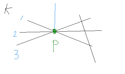평면 1,2,3은 pal 상태로, 공통 교선이 그림의 파란선 이다 (이 파란선은 평면 k와 한점 P에서만 만난다)