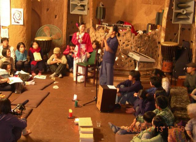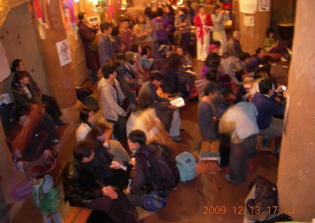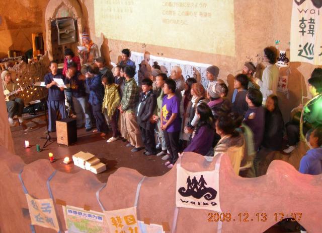 순례에 참가하고있는 일본사람들과 한국아이들 이 모두 나와서 인사 하는 시간입니다..
