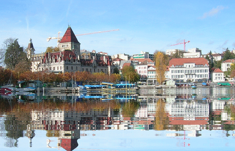 레만 호에서 가장 큰 항구. 근대 올림픽의 창시자 쿠베르탱 남작의 이름을 붙인 산책로가 있고, 13세기에 건축된 우시 성이 호텔로 이용되고 있다.