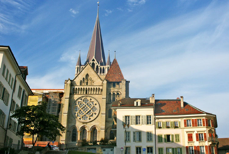 1175년~1232년 카톨릭 성당으로 세워졌으나, 16세기 종교개혁 후 프로테스탄트 교회가 되었다. 스위스에서 가장 아름다운 고딕 건물 중의 하나로 '사도의 입구'라 불리는 남쪽 입구의 조각들과 성당 내부의 글래스가 무척 아름답다. 건물 오른쪽에 있는 종탑에 오르면 로잔 시내와 호수를 한눈에 볼 수 있다.