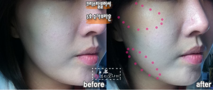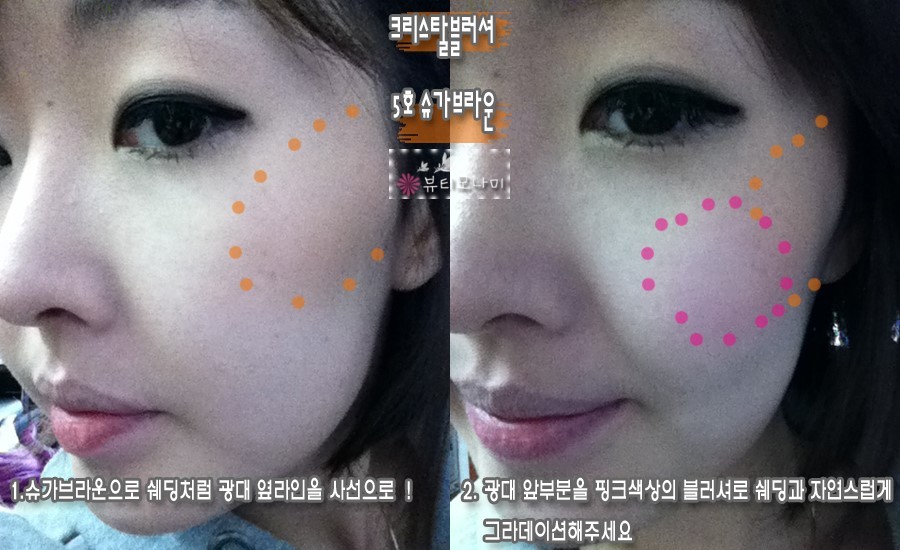 두번째, 슈가브라운 쉐딩과 핑크색블러셔 두가지를 사용하는 방법입니다