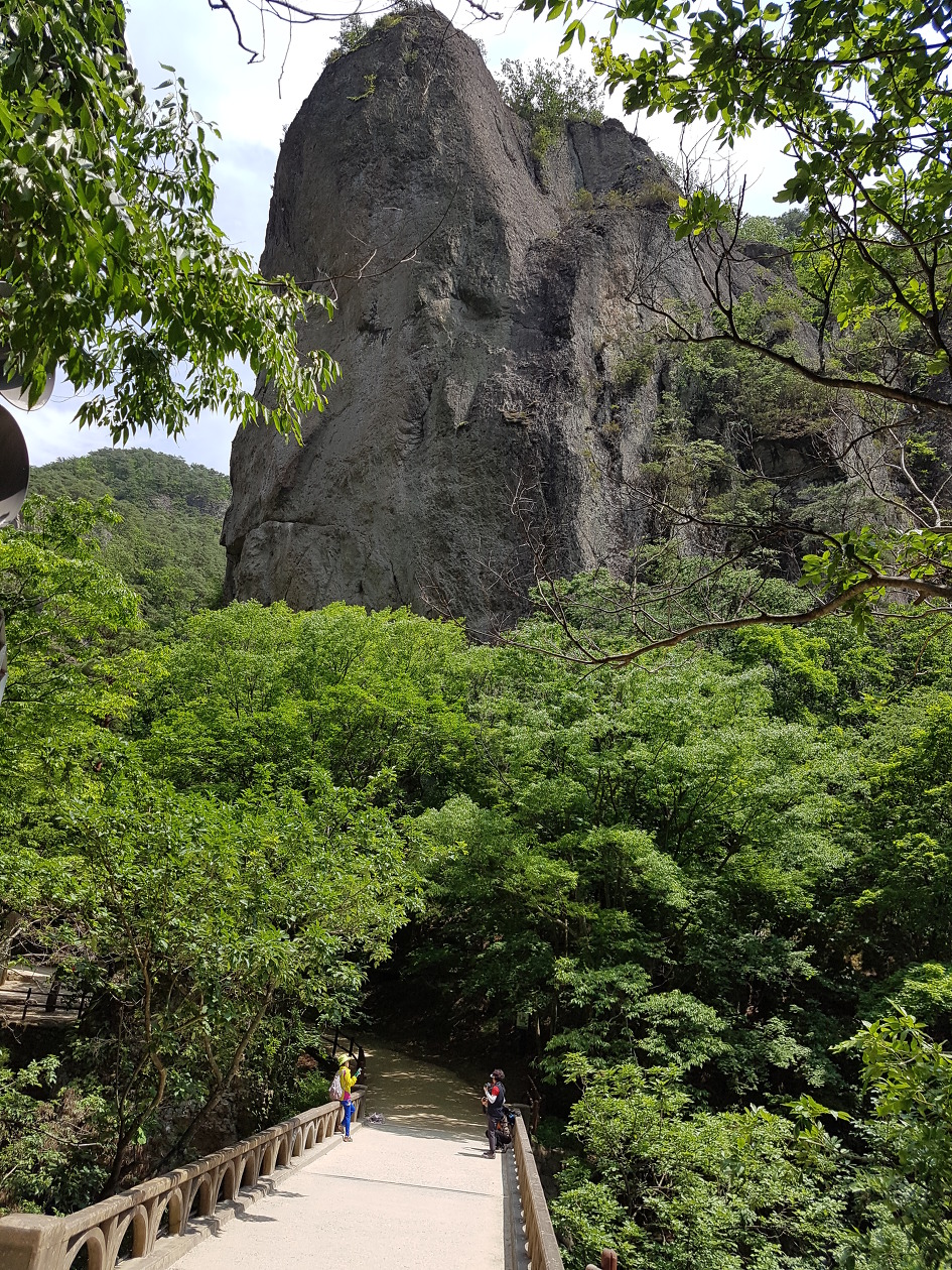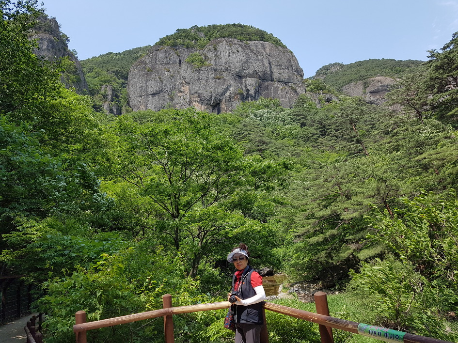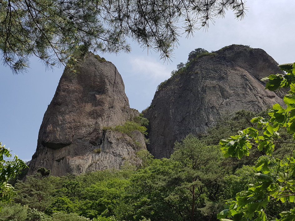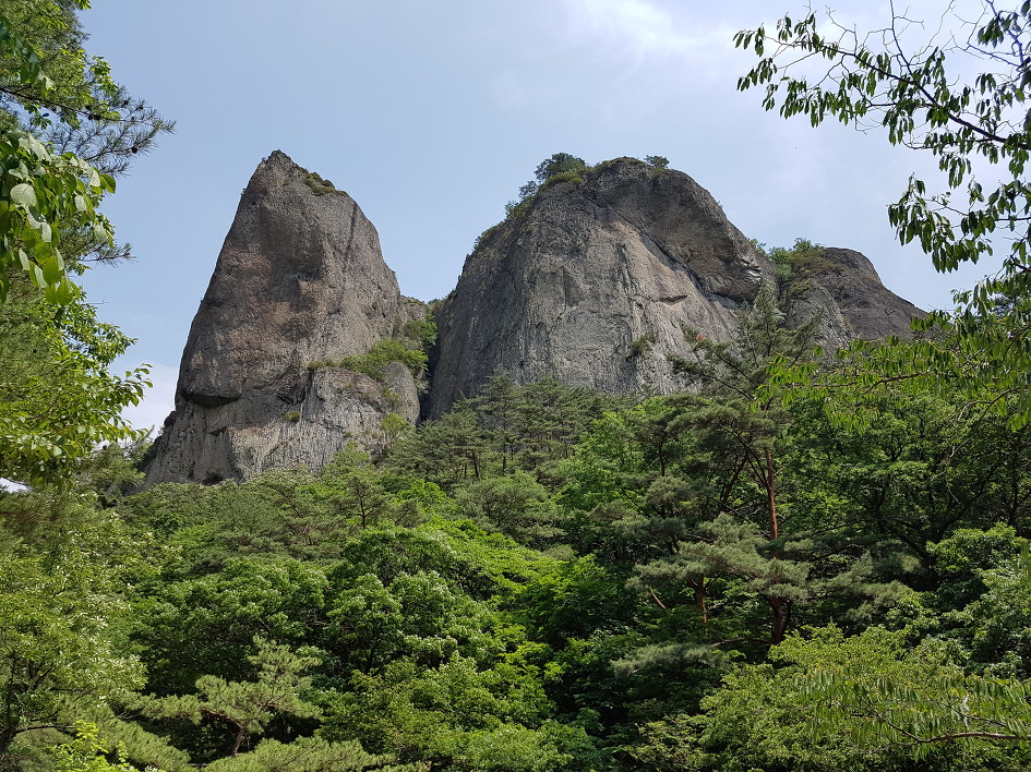 보이지 않지만 푸릇한 주왕산도 나쁘지 않다. 위풍당당한 기암 사이로