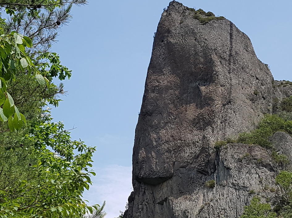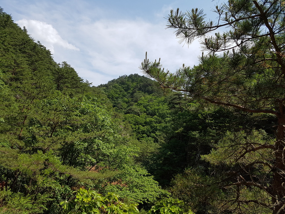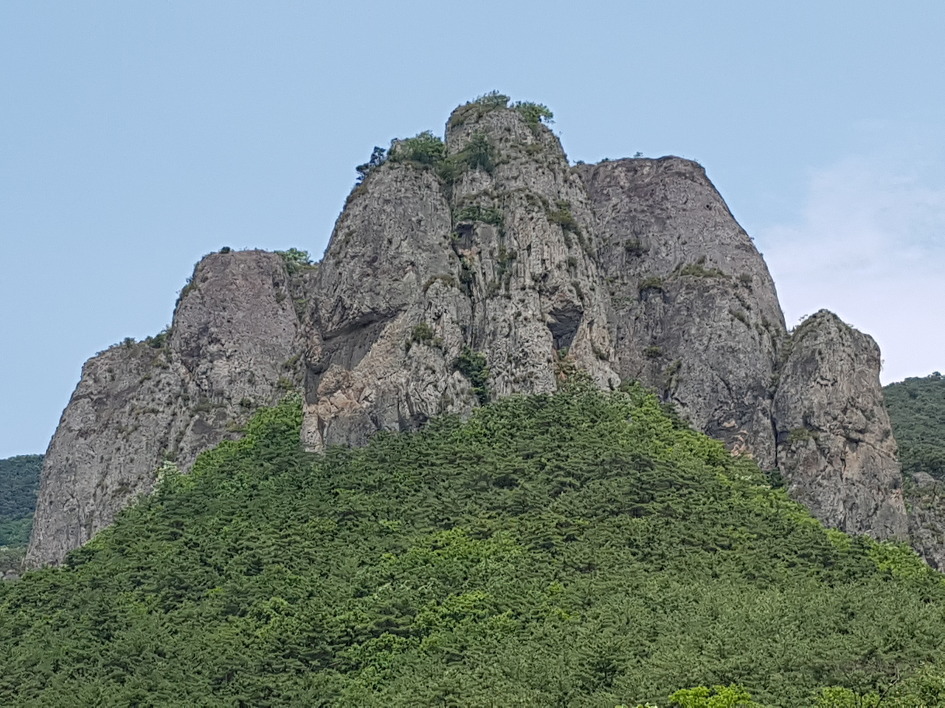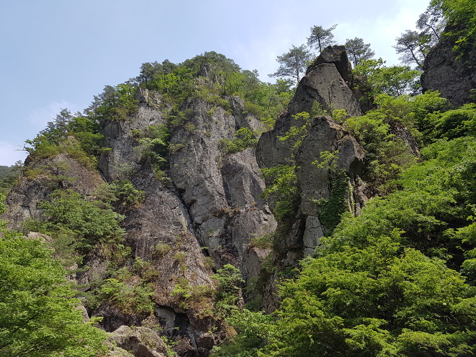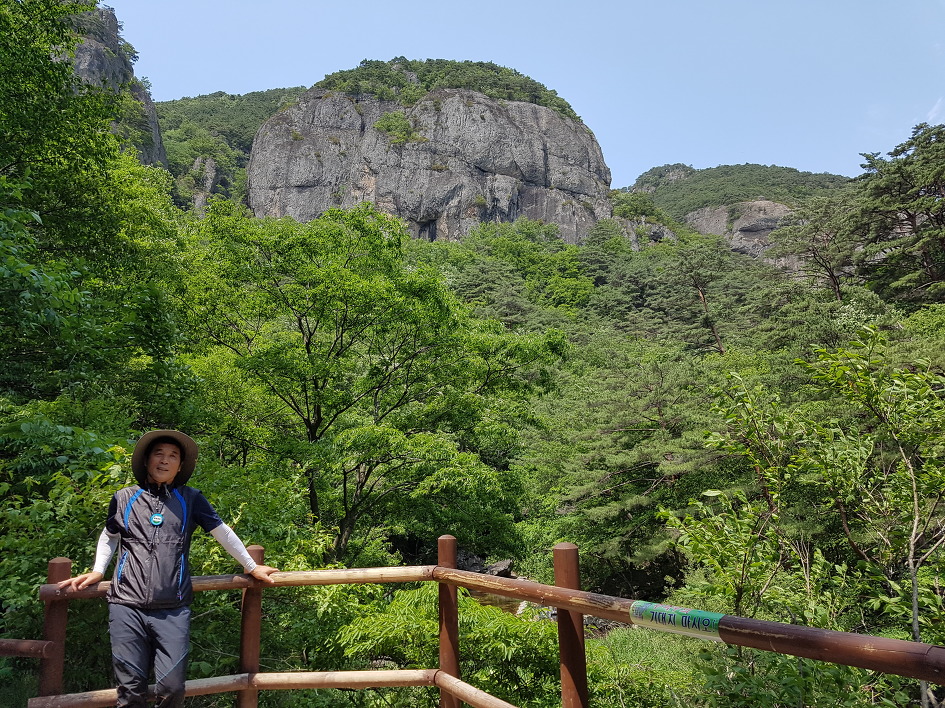 보이지 않지만 푸릇한 주왕산도 나쁘지 않다. 위풍당당한 기암 사이로