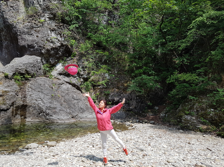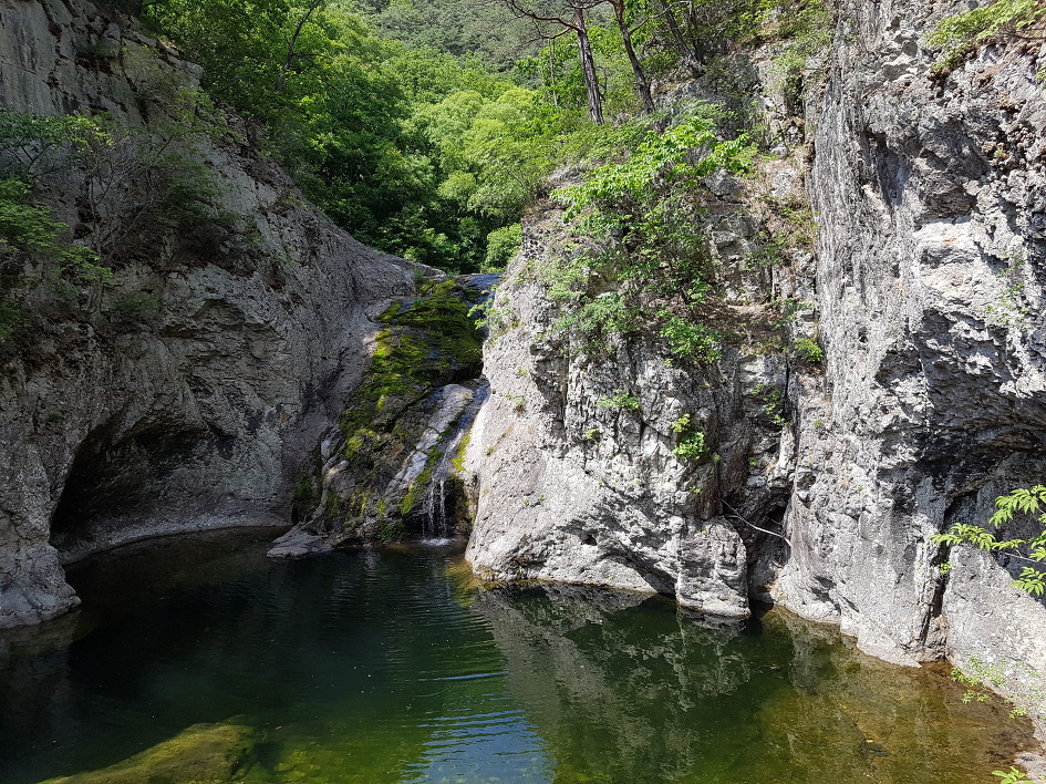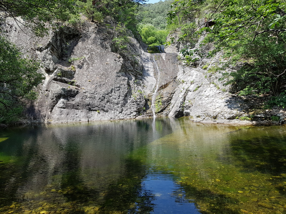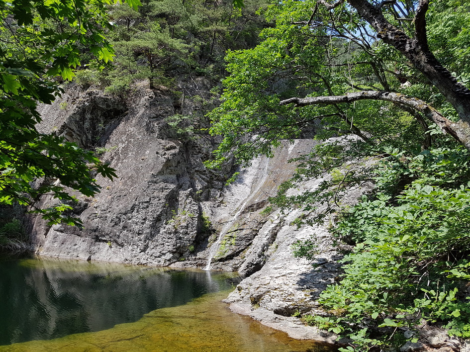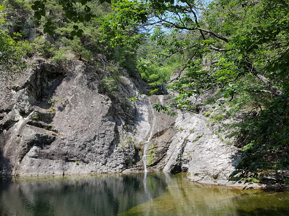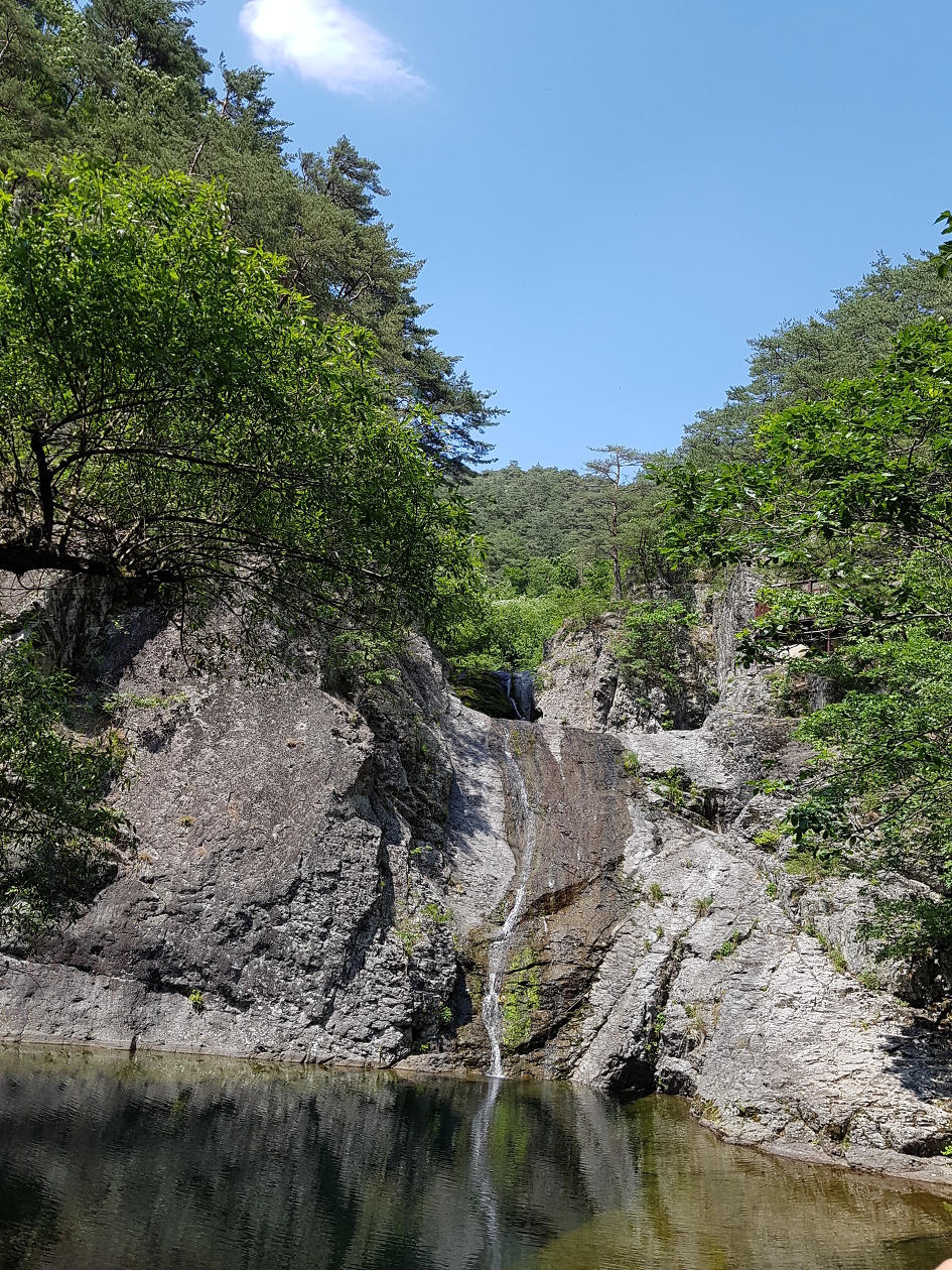 폭포 장소엔 긴 가뭄으로 절구폭포는 아예 물이 말라있었고 용추와 용연폭포는