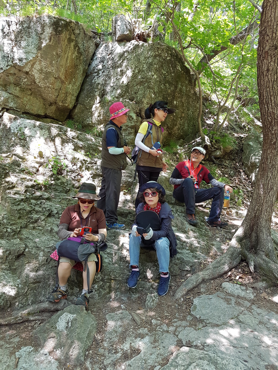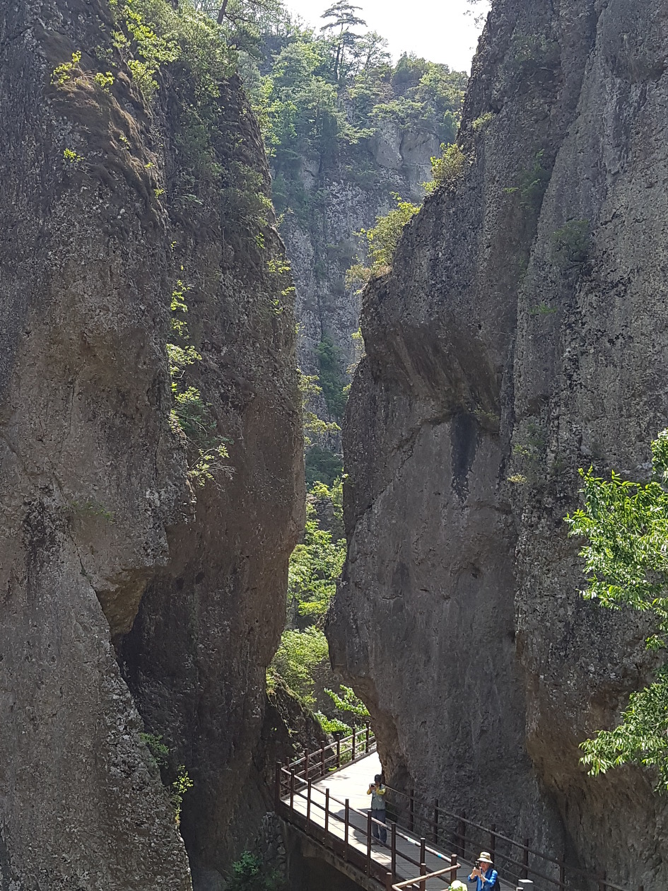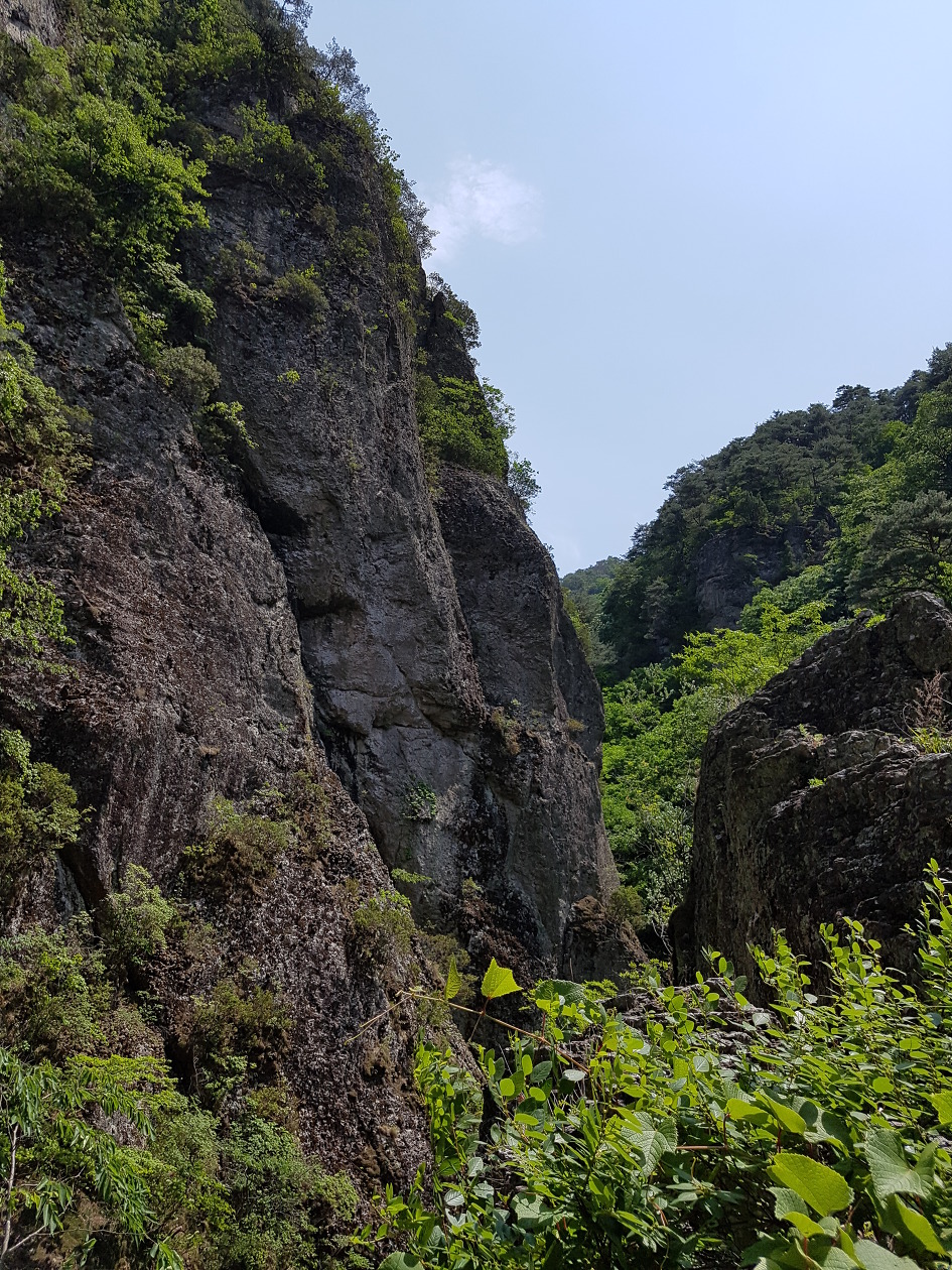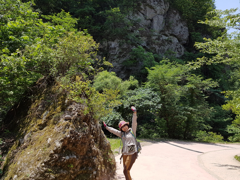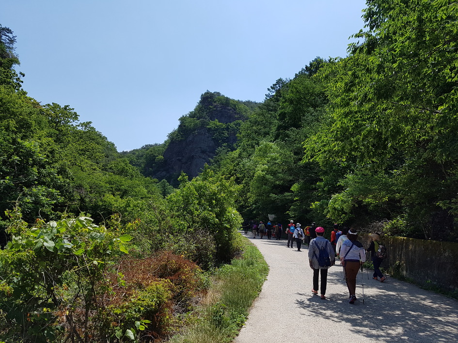 바위가 산정(山頂)을 이루고 기암절벽으로 된 계곡을 이룬 길을 걷는 마음에