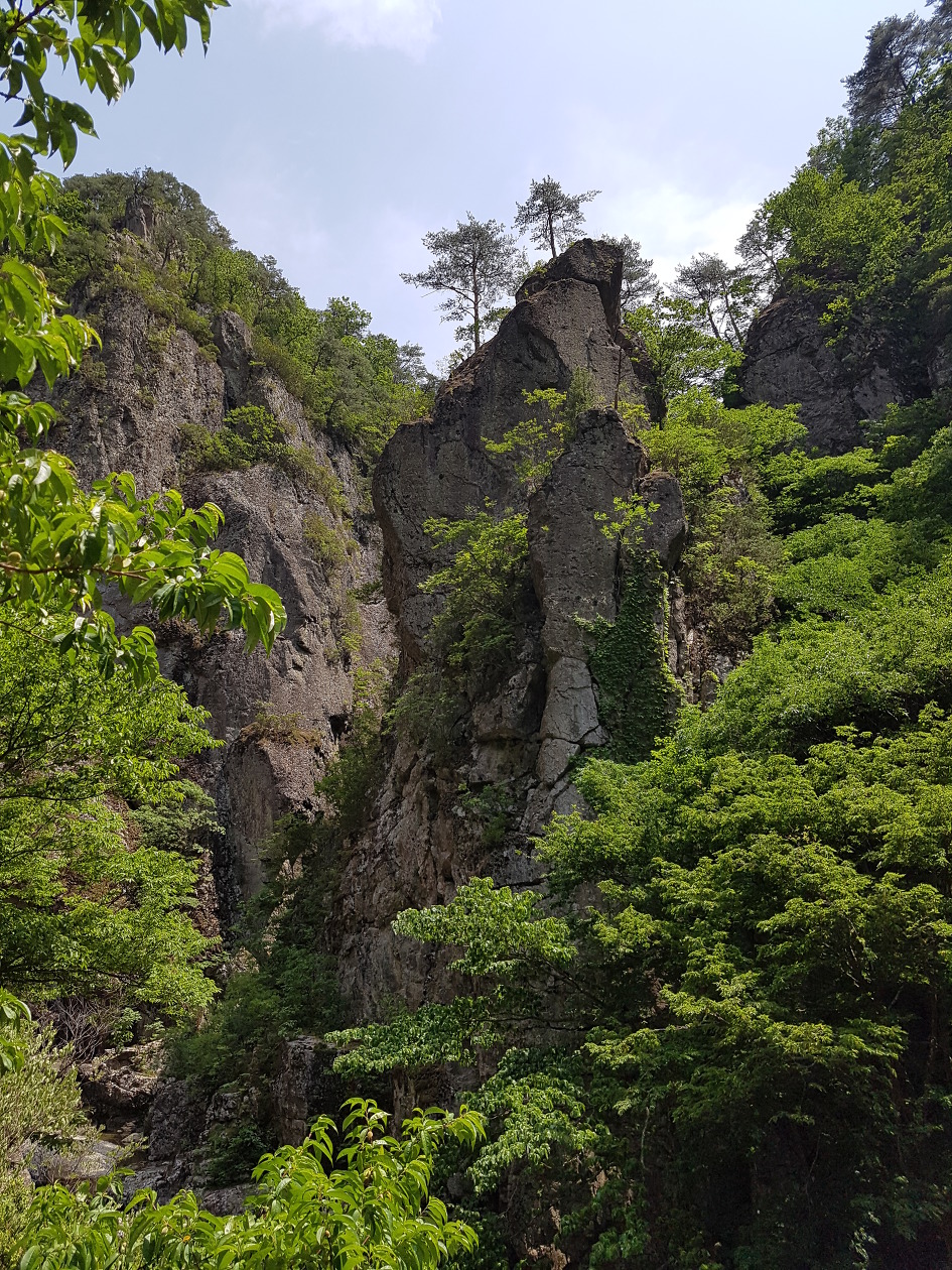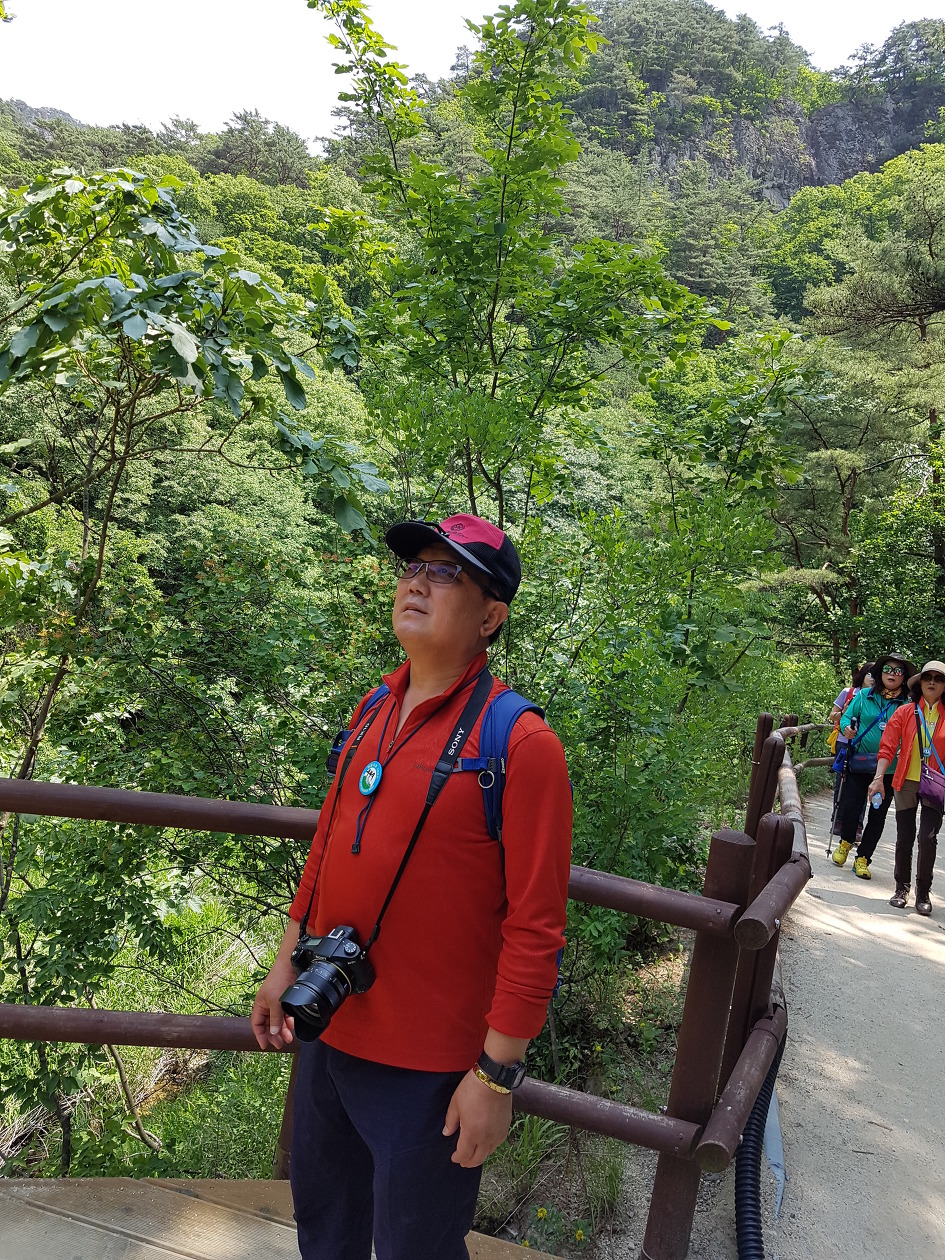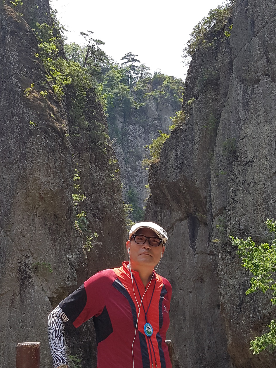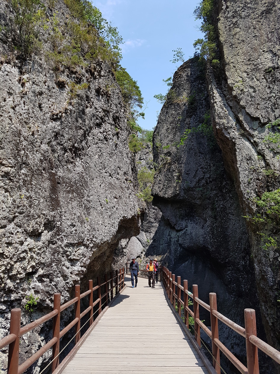 바위가 산정(山頂)을 이루고 기암절벽으로 된 계곡을 이룬 길을 걷는 마음에