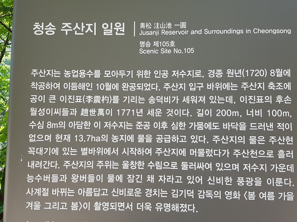 2013년 3월 21일에 명승 제105호로 지정되었다. 청송군 부동면 소재지인