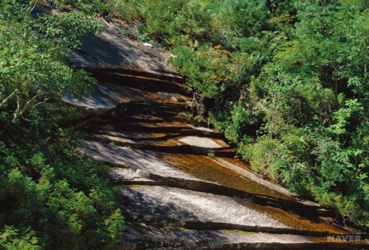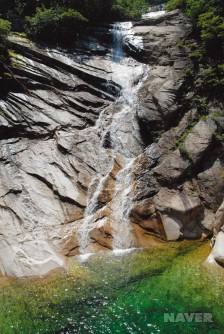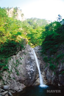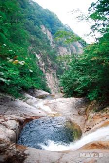 천불동계곡의 비선대 전경수직절리가 탁월하여 기암절벽을 이루고 있다.