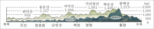 출처:(위성에서 본 한국의 산지지형, 2009. 12., 지광훈, 장동호, 박지훈, 이성순)