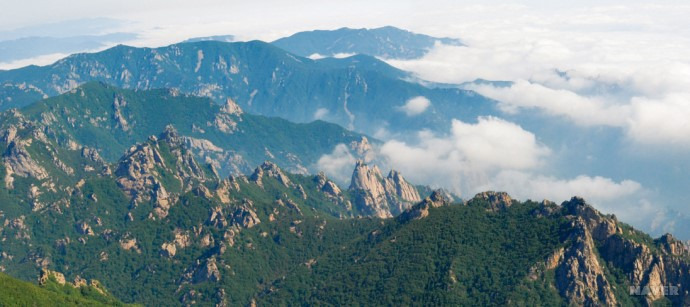 중청봉에서 바라본 대청봉 전경중청봉에서 대청봉 사이는 융기 이전에 만들어진 고위평탄면이 나타난다.