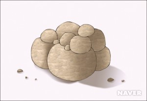 (d) 돌탑군을 이룬 암석 덩어리들이 침식과 풍화로 붕괴되어 최종적으로 둥근 암석 덩어리만 남는다.