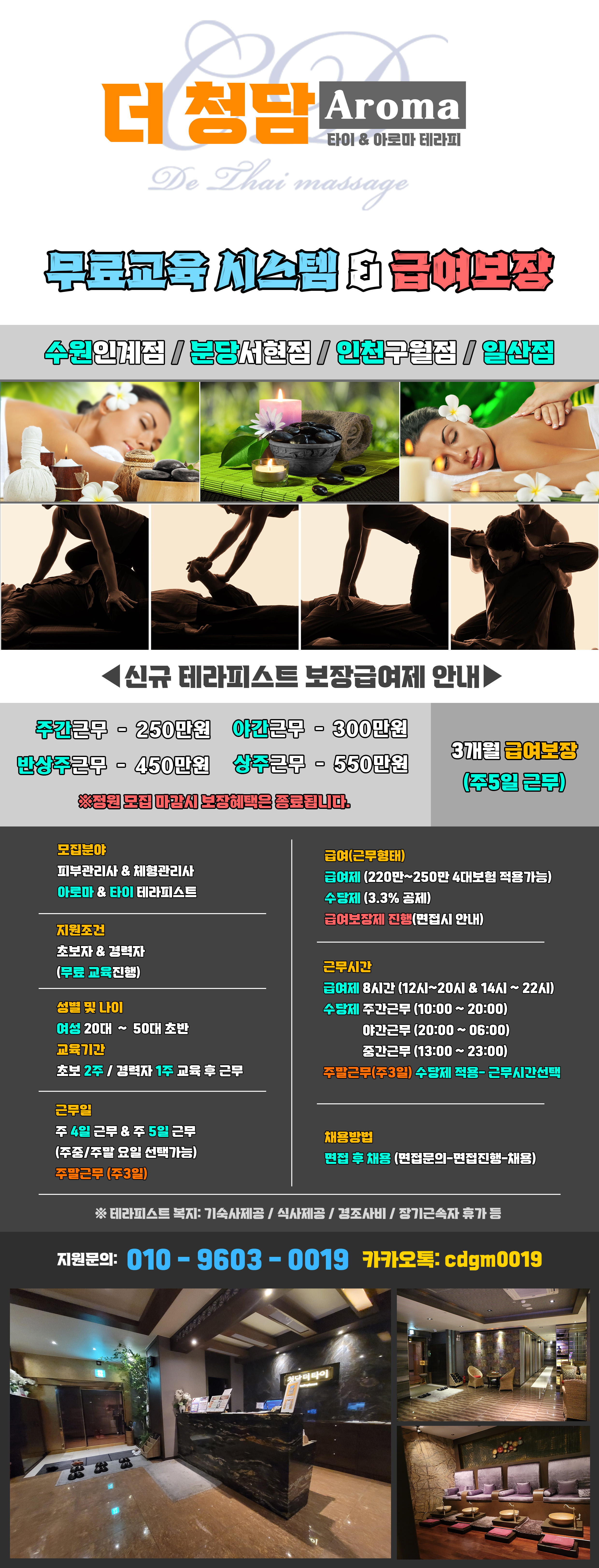 ■[더 청담] 수원/일산/인천/분당 테라피스트 모집합니다!(보장급여제) 주 4일 & 5일 근무 / 주말근무■ 작성자더청담&청담더타이|작성시간25.04.07|조회수24 목록 댓글 0 글자크기 작게가 글자크기 크게가 다음검색 현재 게시글 추가 기능 열기 북마크 공유하기 신고 센터로 신고 댓글 댓글 0 댓글쓰기 답글쓰기 댓글 리스트