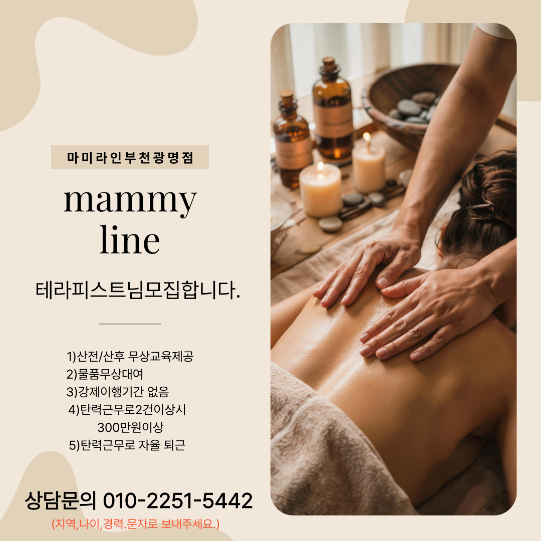 편안하고 가족같은 분위기의 마미라인에서 새로운 테라피스트를 모십니다.