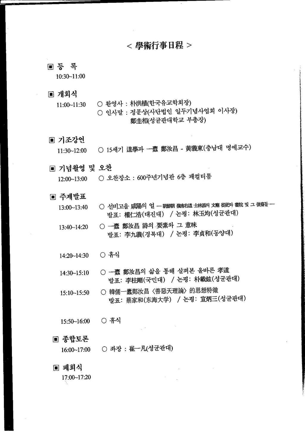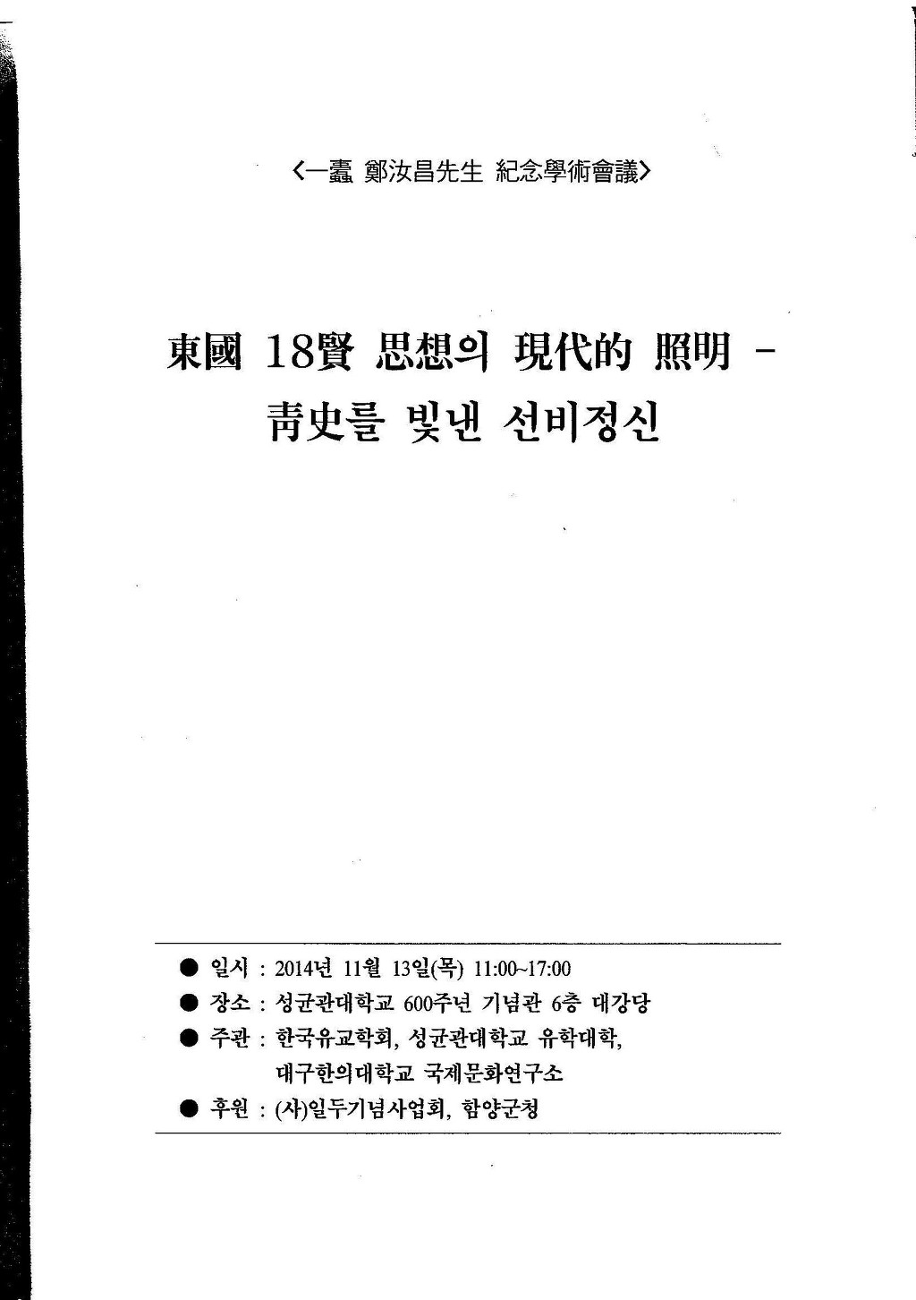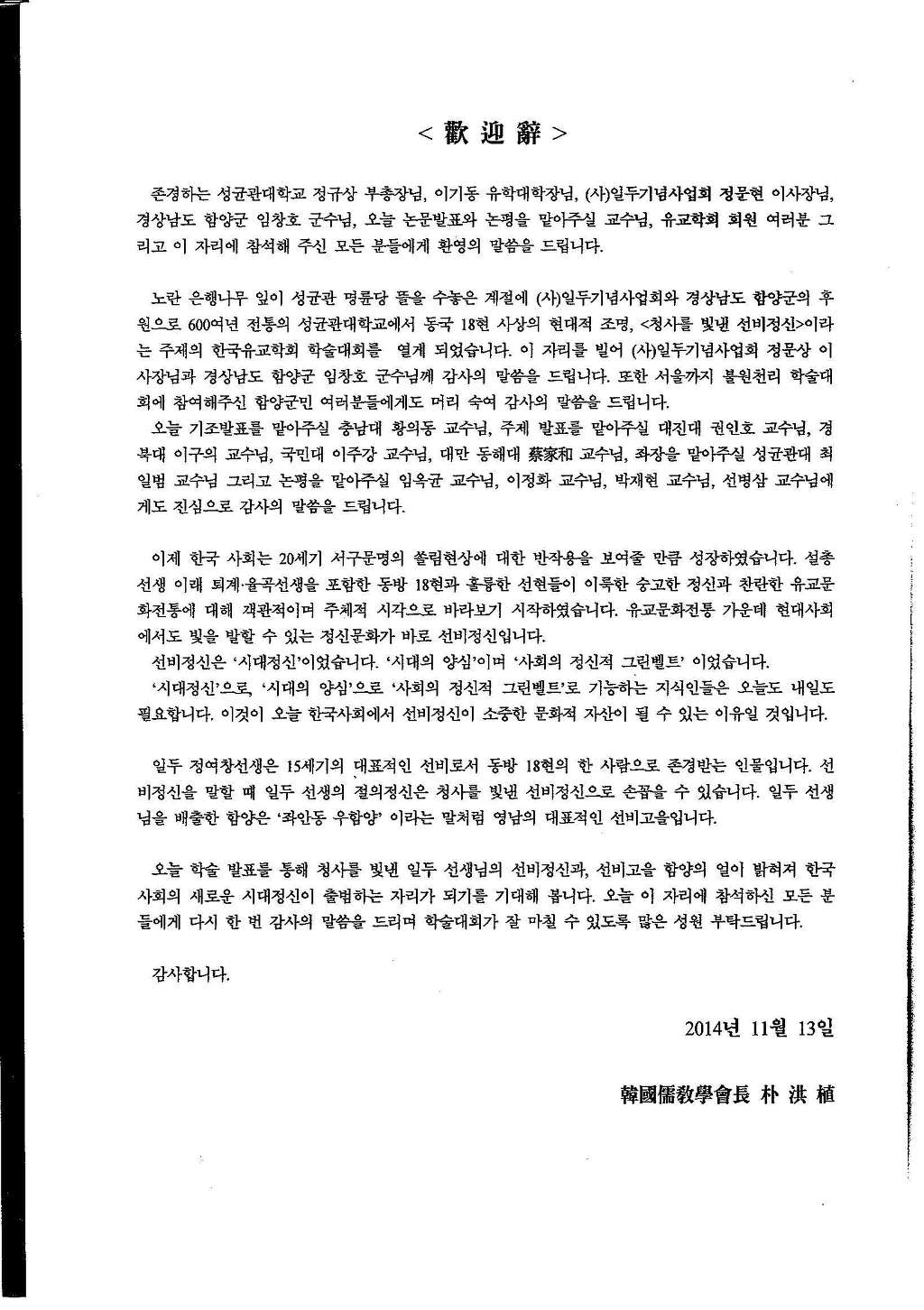 2014년 성균관 대학교에서 후손인 정규상총장님과 (사)일두기념사업회와 함양군청에서 개최된