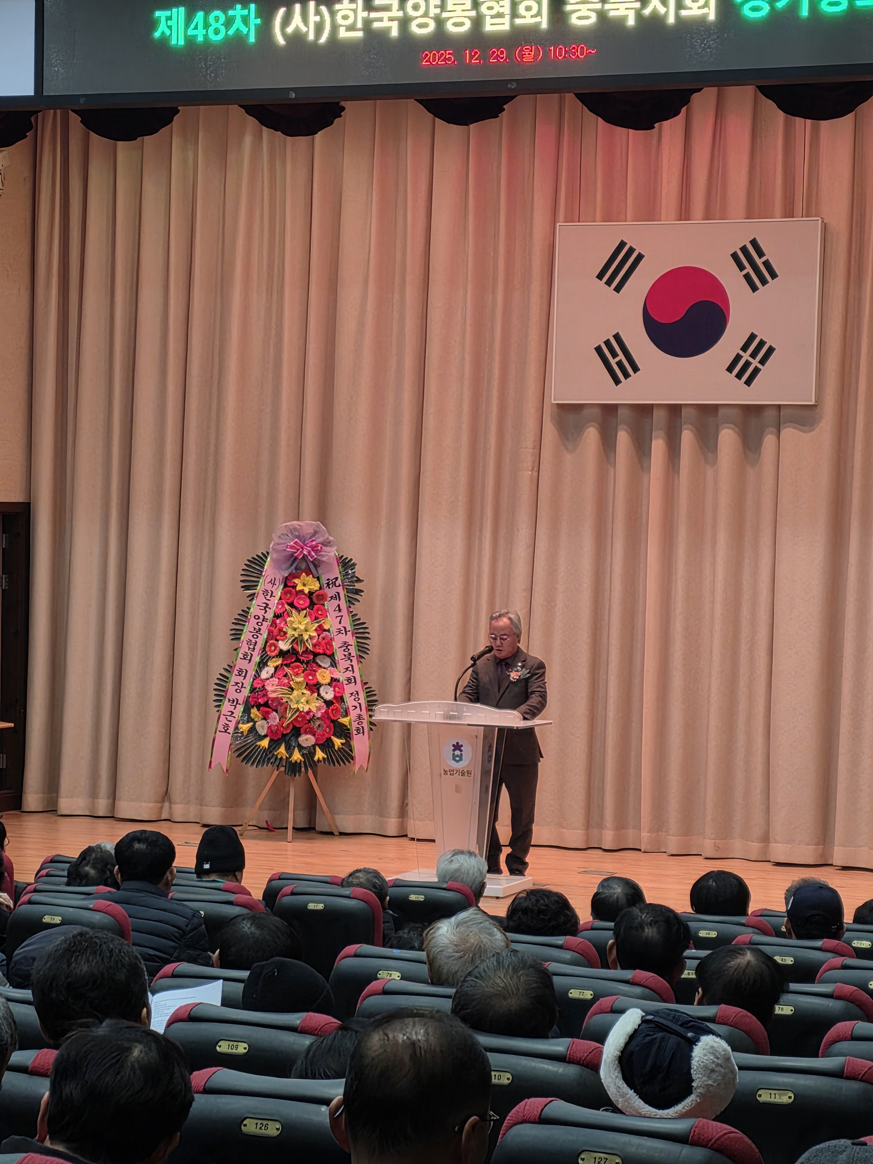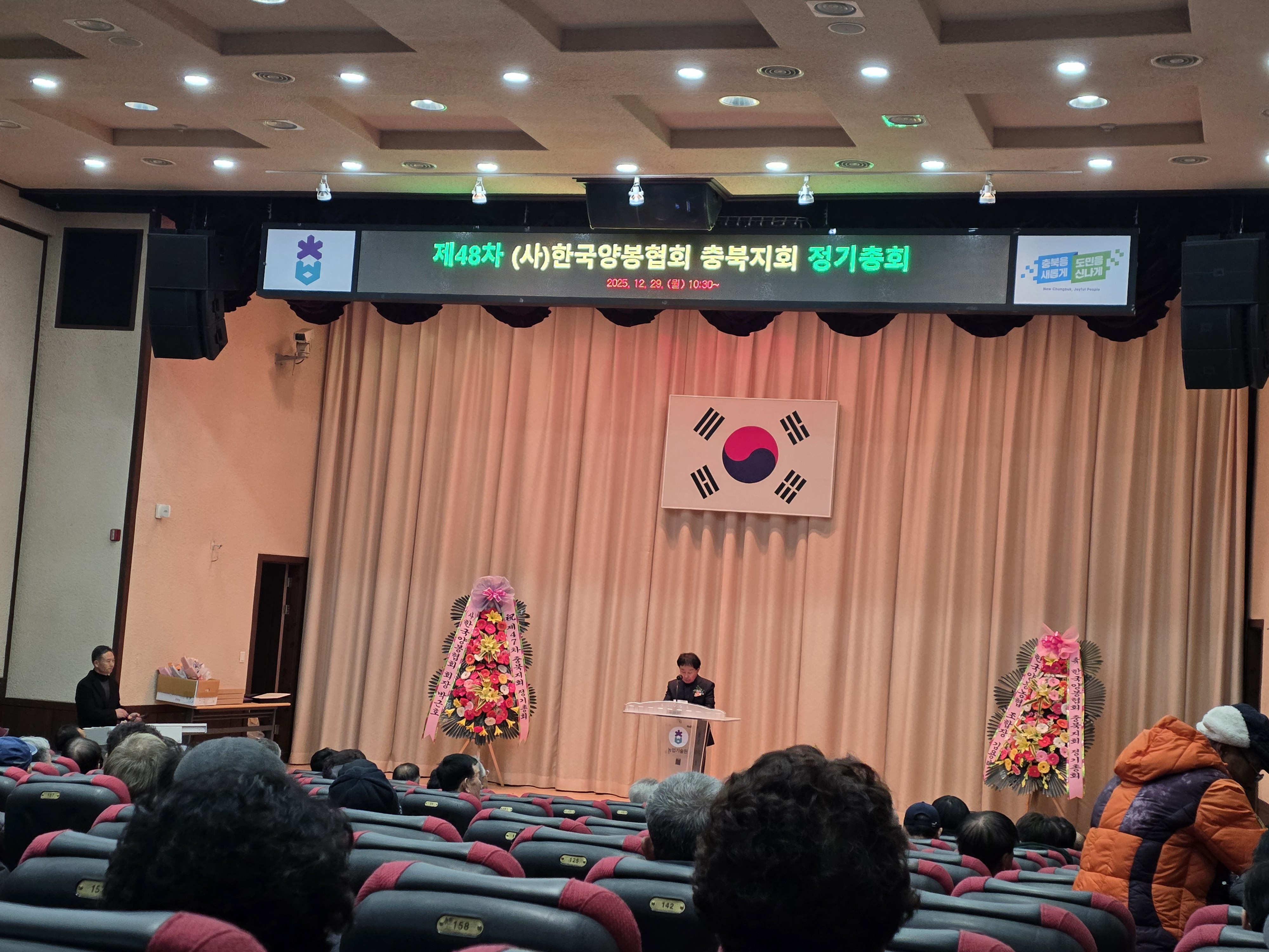 | 2025년 12월 29일 아침 일찍 충청북도 한국양봉협회 총회 참석하기 위해 출발하여 청주에 도착을 하여 보니 충북농업기술원의 규모가 대단하였습니다 충북 지역의 양봉인들이 모여 있는 모습을 보니 양봉에 대한 열정은 타 지역 양봉인들 보다 더 대단하신것 같았습니다 한 가지 아쉬운점은 충북지회 지회장이 어떤 연유인지는 몰라도 안 계시고 회원님들만의 총회를 하고 있다니....... 날씨도 안 도와 주는지 차가운 빗소리만 들려서 양봉박물관 설립 안내문도 전달하지 못한 체 서둘러 대구로 내려 왔답니다.................ㅠㅠ |
