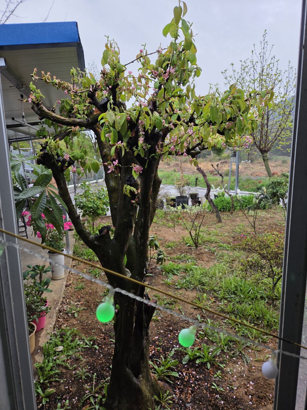 모과 나무가 비가오니