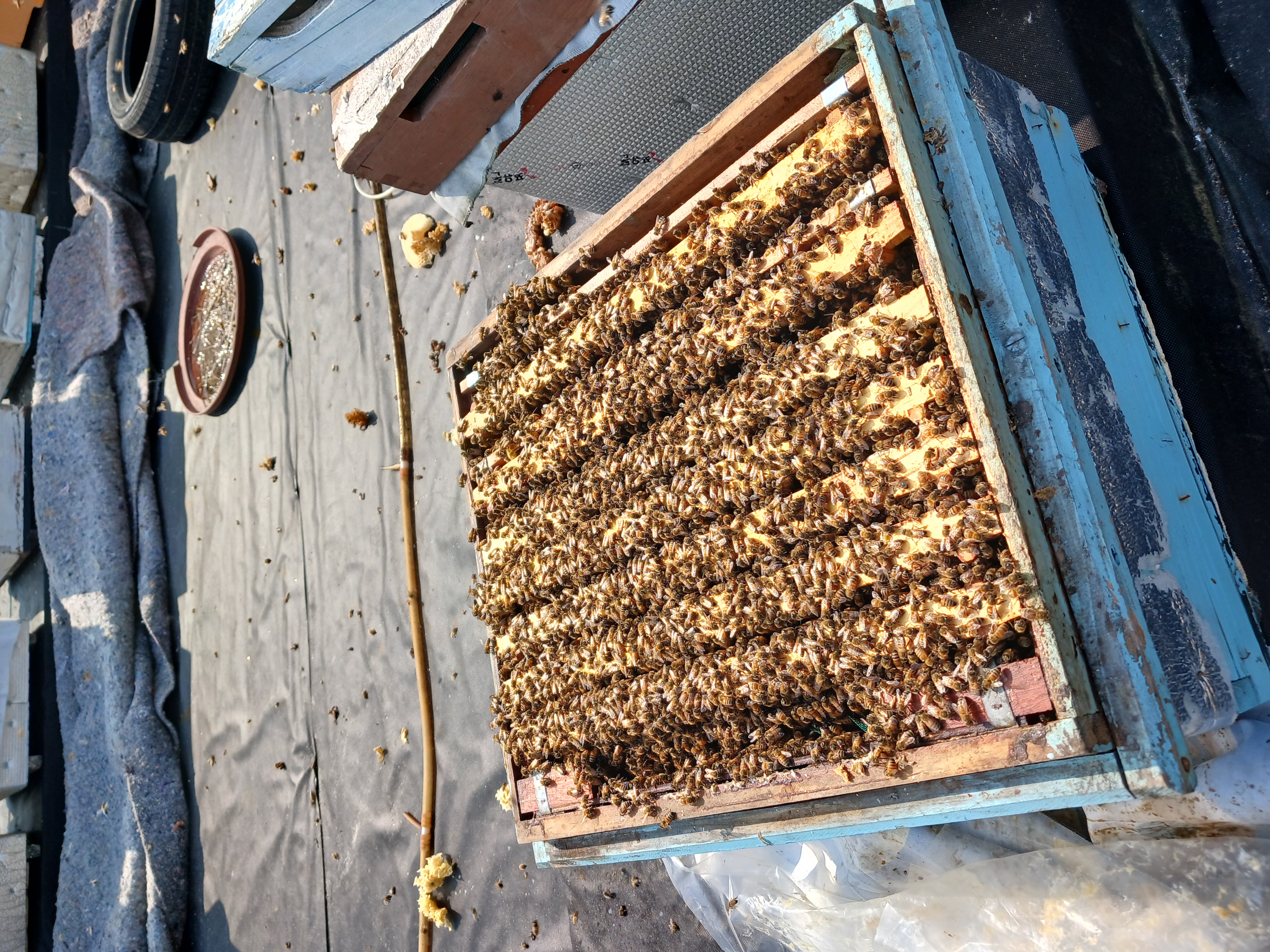 다시 벌통에 보온덮개 원위치 덮어줍니다.
