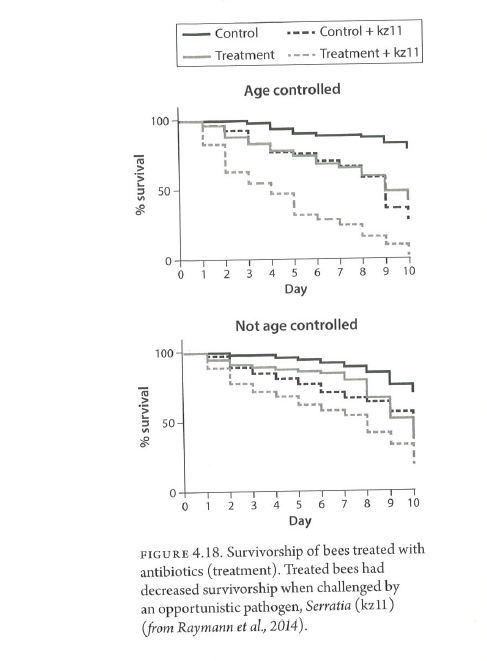 (*** 유해균이 꿀벌 장내에 존재하면 꿀벌 수명이 단축된다)
