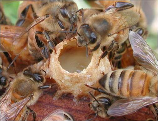 숙성된 꿀 꽃가루로 일벌의 머리 전두엽 인두선에서 만들어지는 로열젤리!