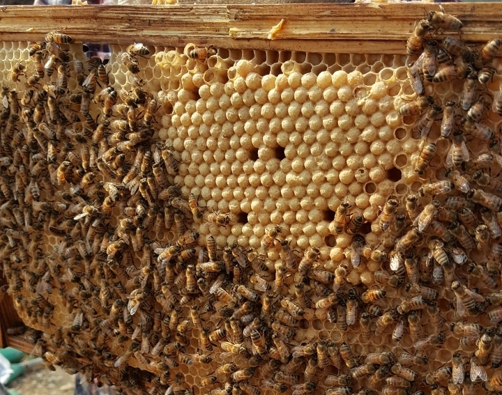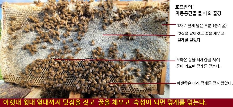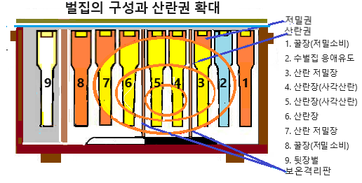 애벌레 구역 (봉아권 蜂兒圈) →산란권,애벌레구역,꽃가루저장구역,꿀저장구역이 구분 된다.