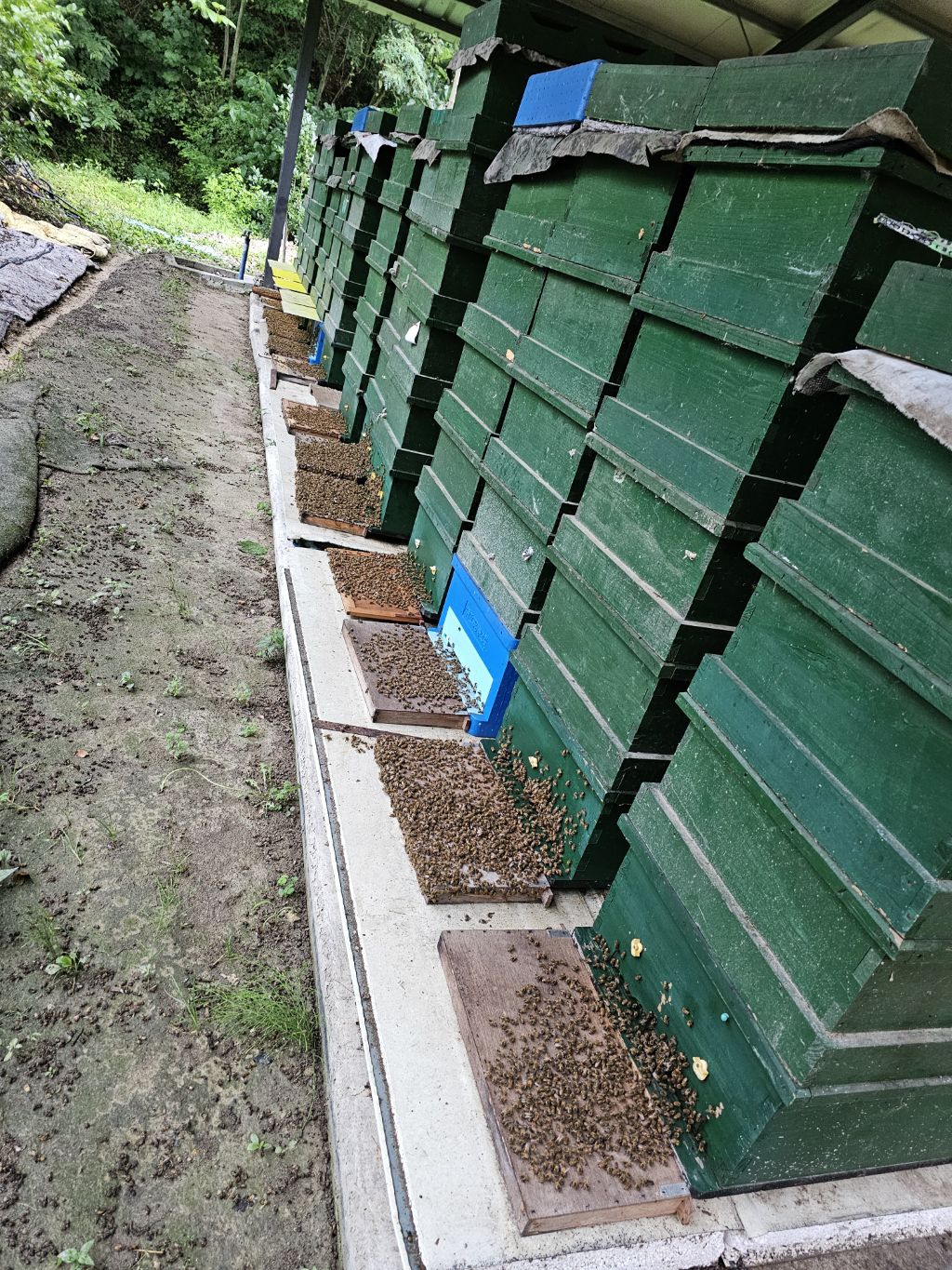 여름나기 (월하 越夏) →여름을 남. 주로 장마와 무더위를 나는 것을 말한다.. 이 시기에는 온도와 습도가 높아 병해충에 취약할 수 있다. 깊은 산을 찾아가거나 벌통을 나무그늘에 둔다. 벌통을 시원하게 하는 관리가 필요하다.