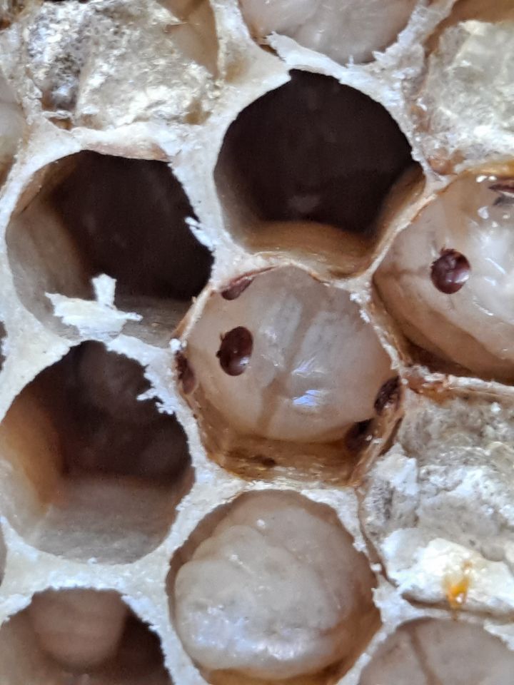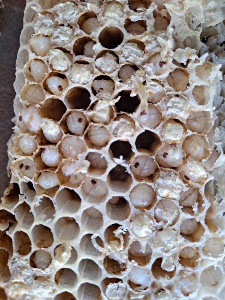 수벌 유충 한마리에 응애가 5마리나 들어 있습니다...ㅜㅜ