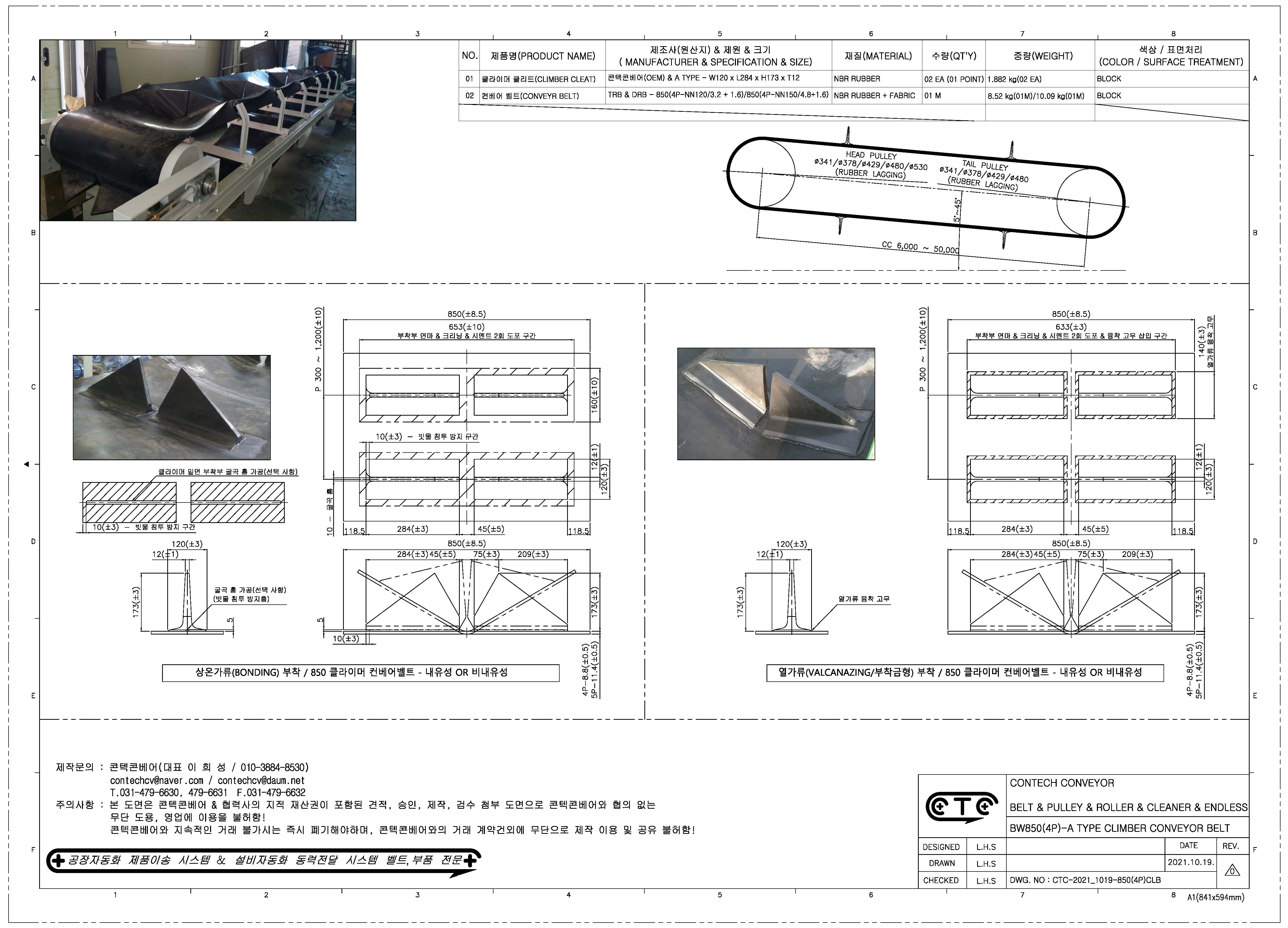 BW750, BW800, BW850, BW900 - 클라이머 컨베어벨트 - 견적&승인&검수첨부도면