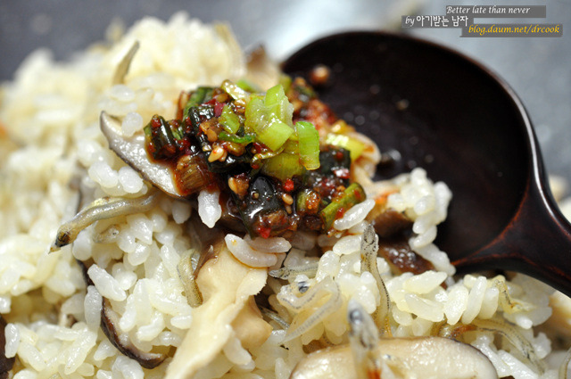 표고버섯과 같이 밥을 했더니 더욱 맛이 감칠맛 나는 그런 요리에요.