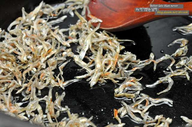 들기름을 충분히 두르고 멸치를 달달 볶습니다.