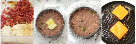 3. 재료를 약간 담고 누른 후에 가운데 버터 조각을 넣어주면 육질이 촉촉해지고 고소해진답니다.