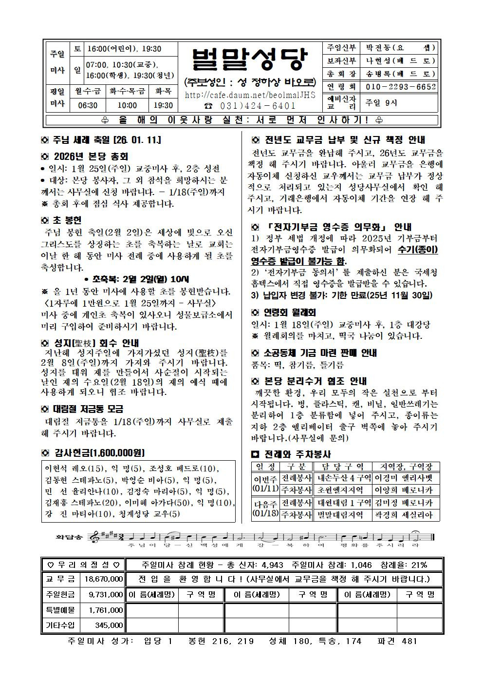 2026년 1월 11일 주님 세례 축일 작성자사무실-|작성시간26.01.10|조회수171 목록 댓글 0 글자크기 작게가 글자크기 크게가 다음검색 현재 게시글 추가 기능 열기 북마크 공유하기 신고 센터로 신고 댓글 댓글 0 댓글쓰기 답글쓰기 댓글 리스트